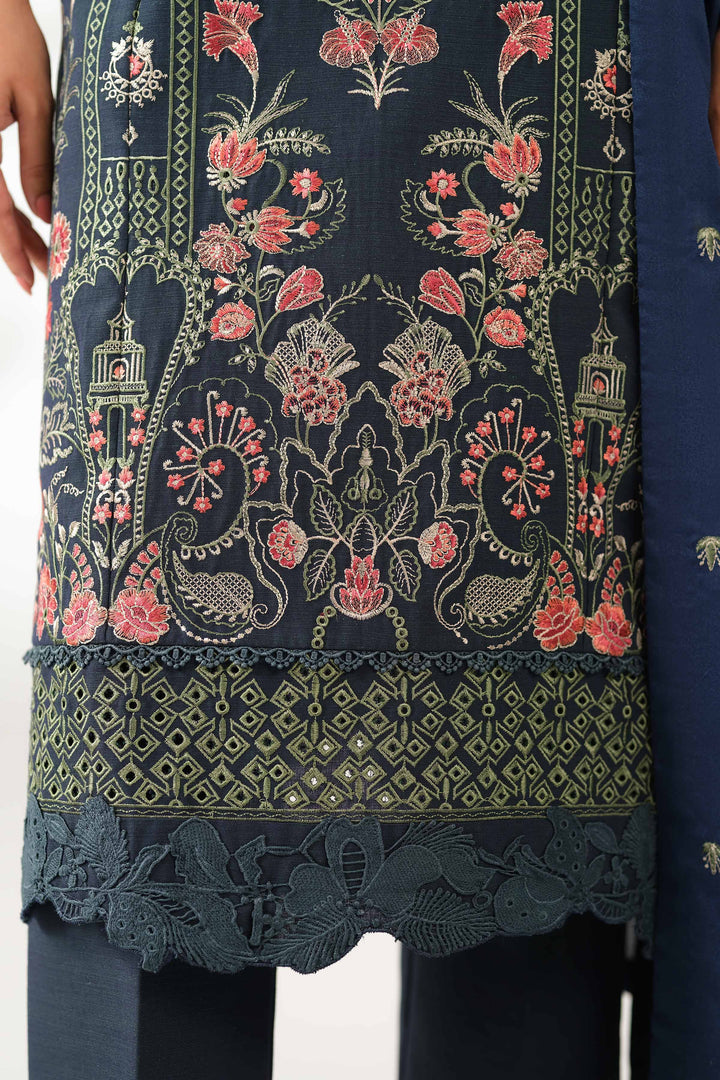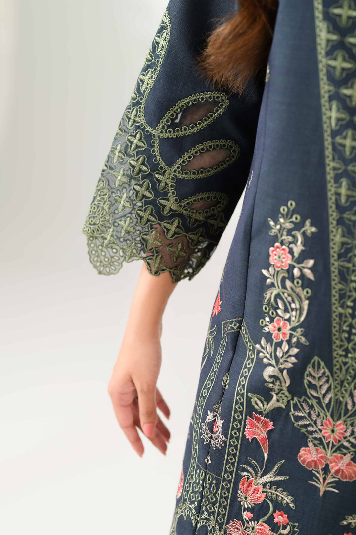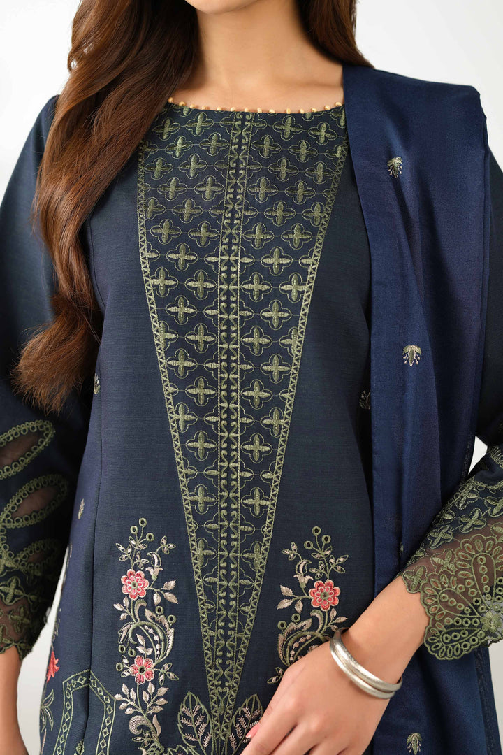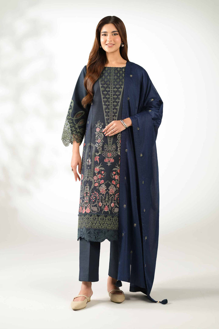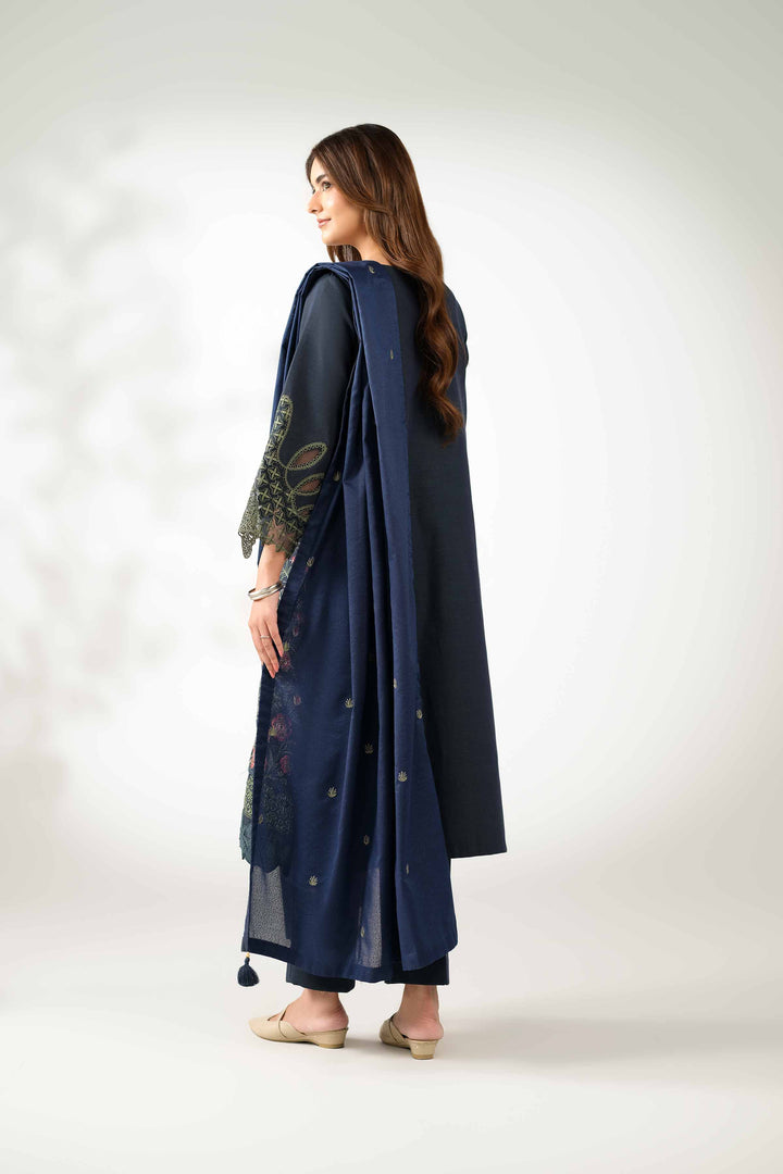 Woven with elegance, inspired by culture with this printed embroidered three-piece from the latest unstitched Winter Collection.