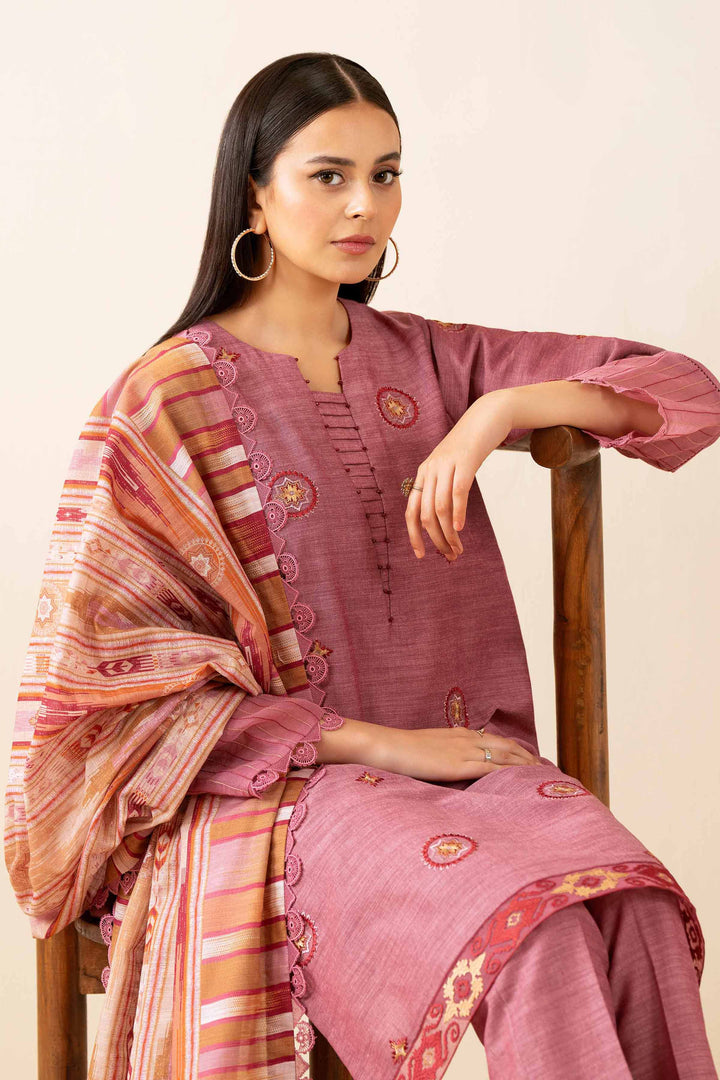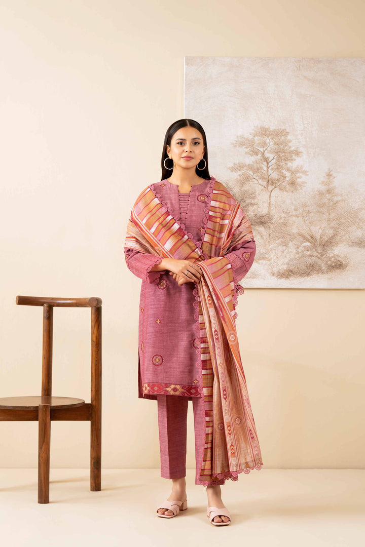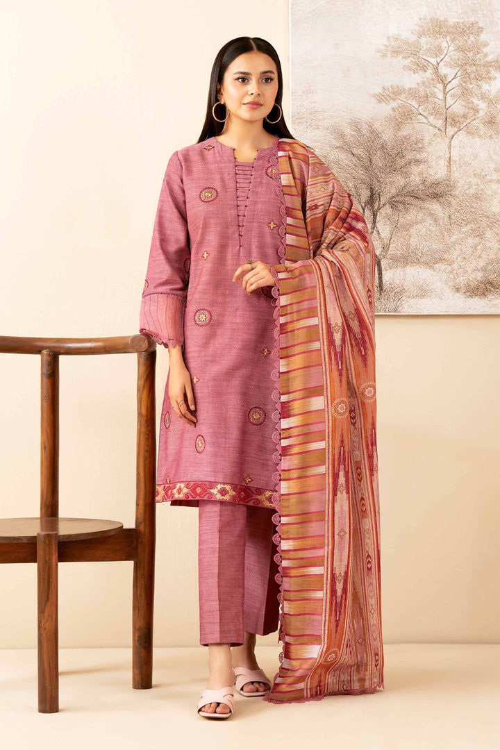 Designed to reflect your roots with this printed embroidered three-piece from the latest unstitched Winter Collection.