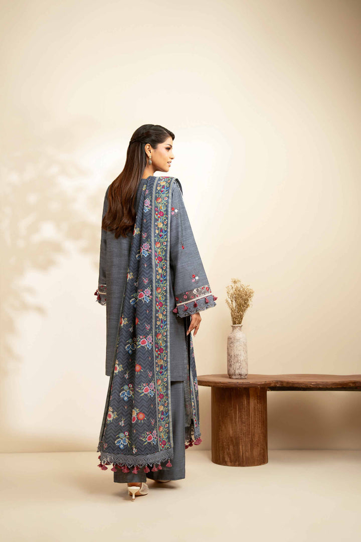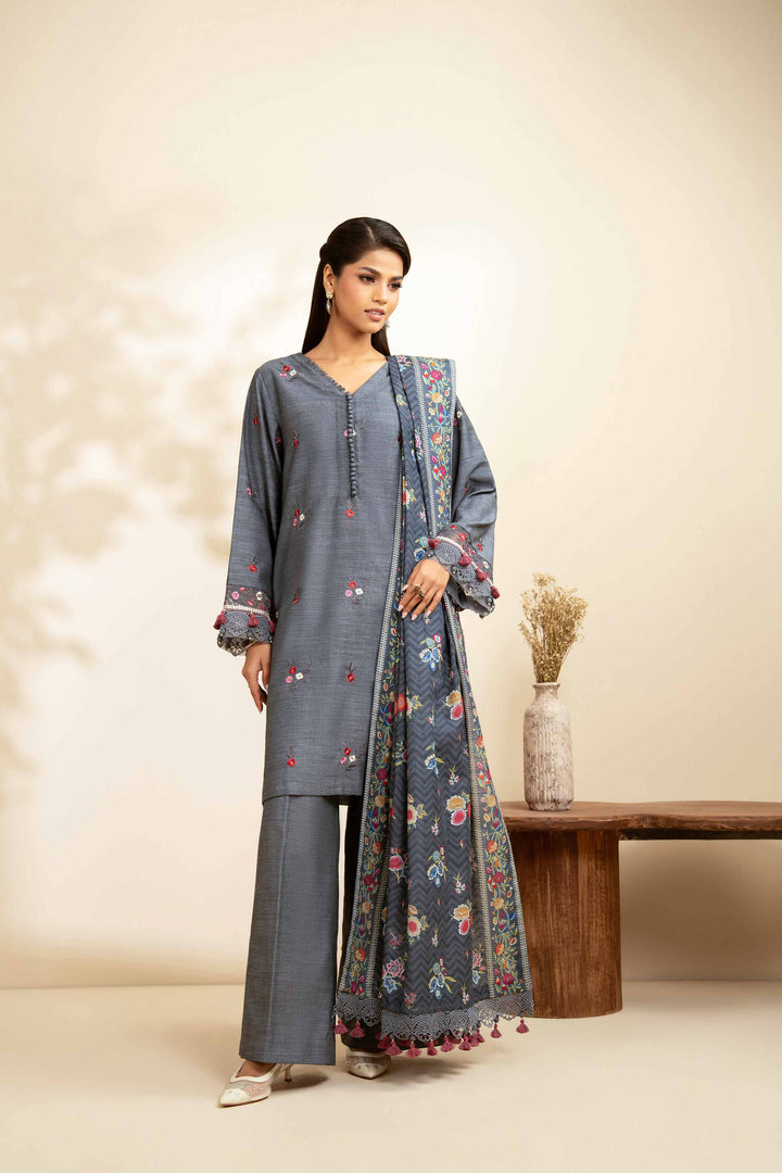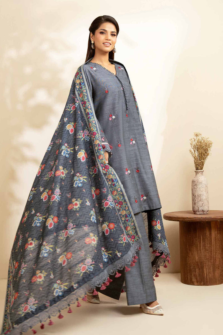 Effortless grace, timeless tradition with this printed embroidered three-piece from the latest unstitched Winter Collection.