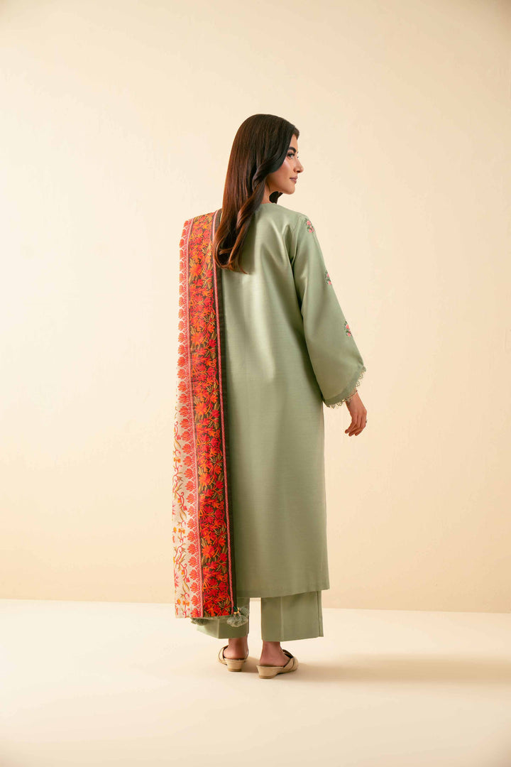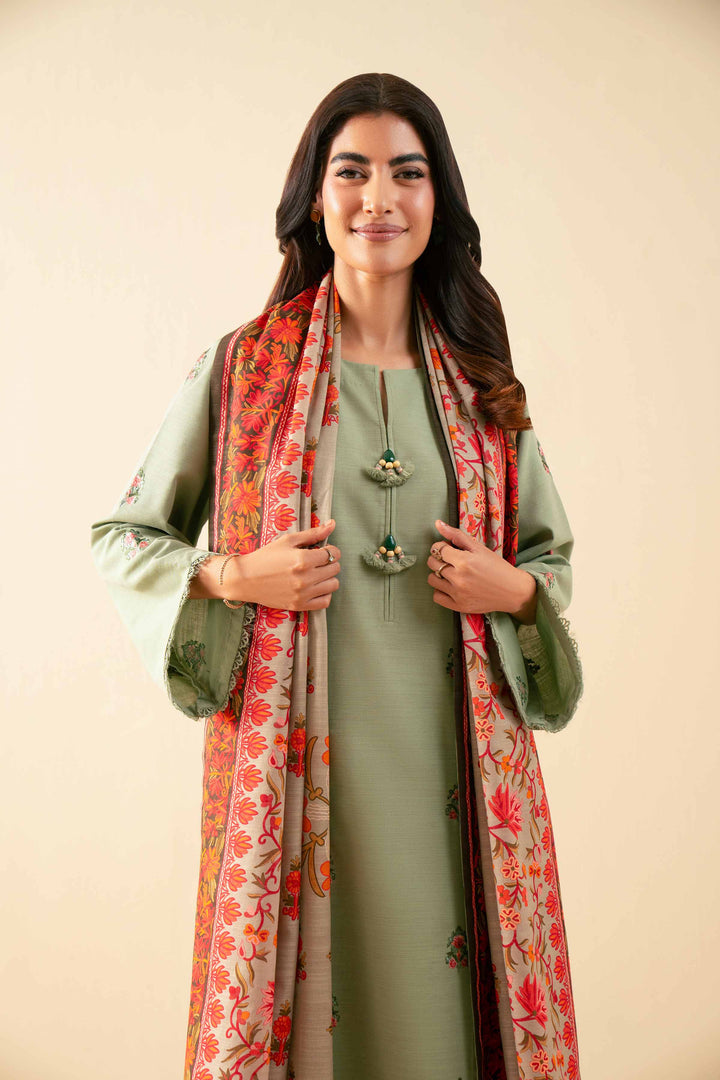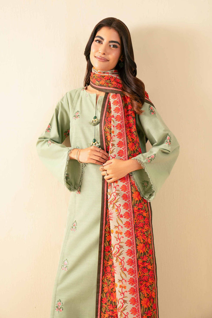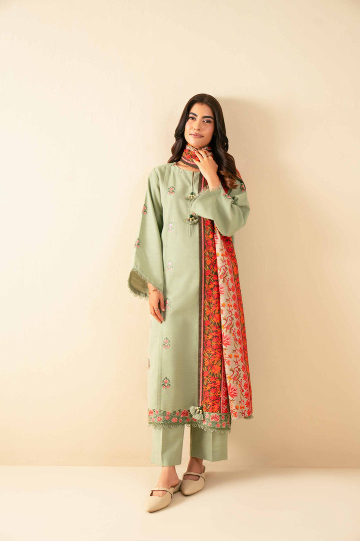 Heritage, redefined for modern living with this printed embroidered three-piece from the latest unstitched Winter Collection.