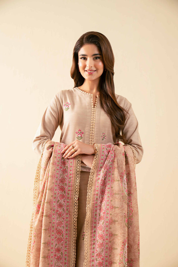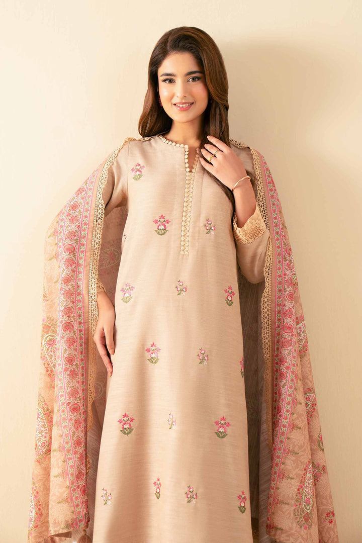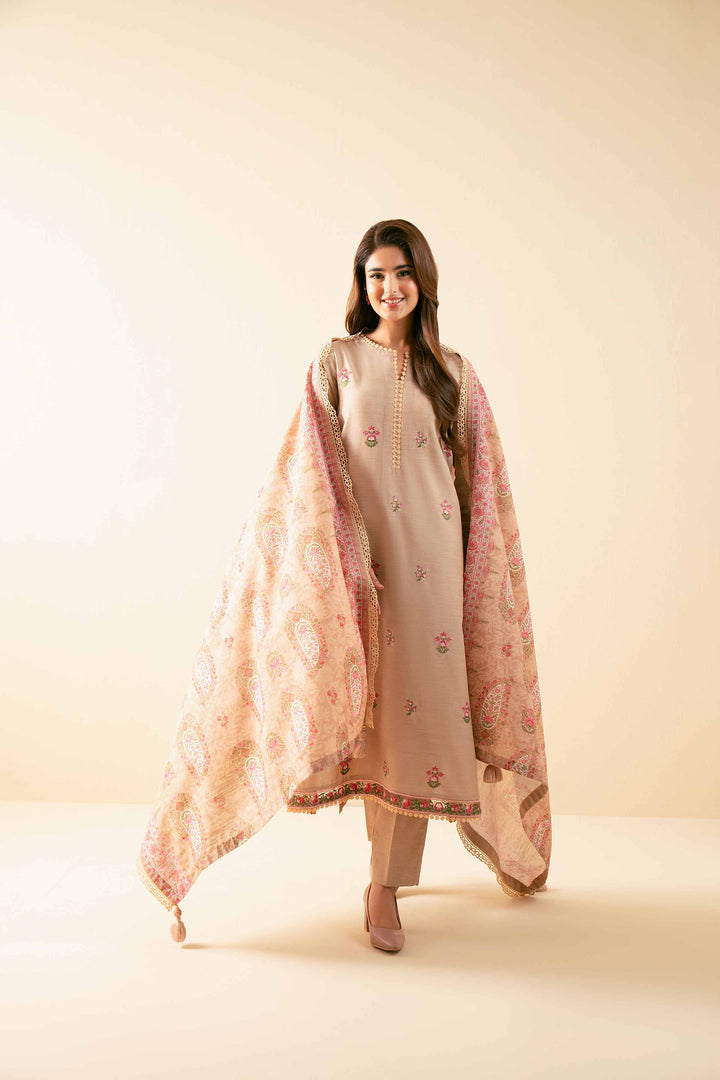 Heritage, redefined for modern living with this printed embroidered three-piece from the latest unstitched Winter Collection.