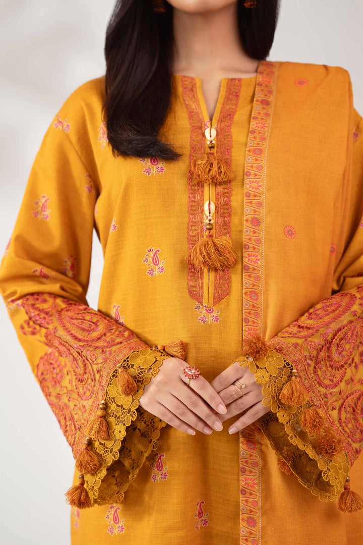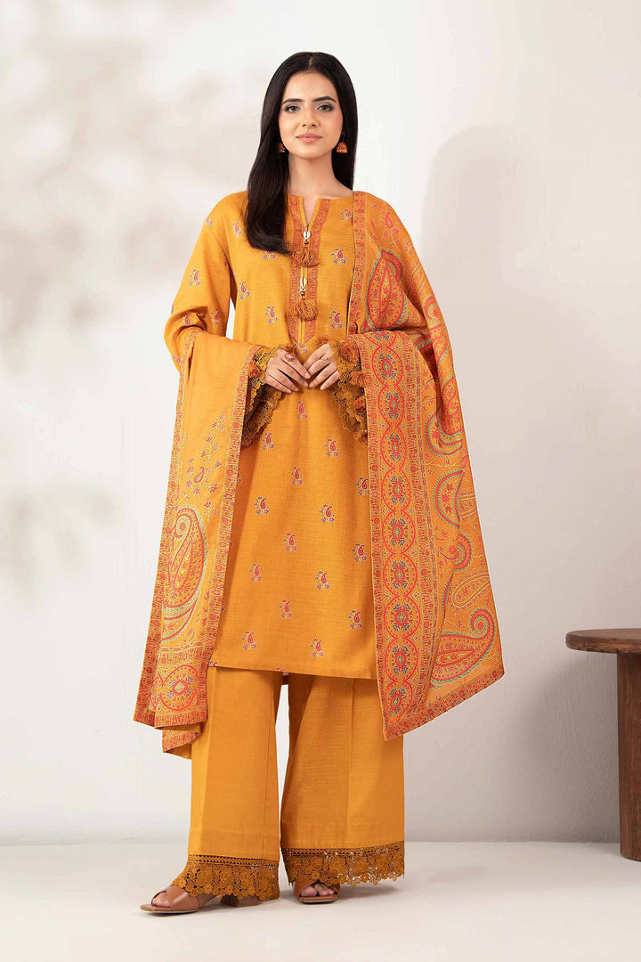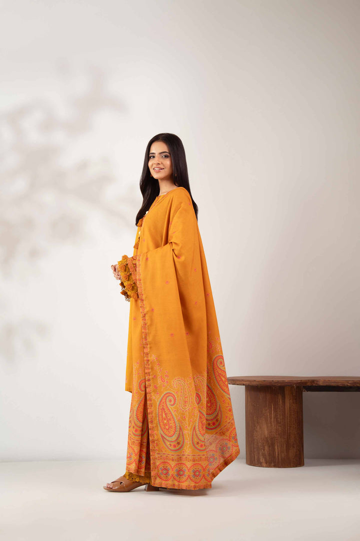 Where elegance flows from culture with this digitally printed embroidered three-piece from the latest unstitched Winter Collection.