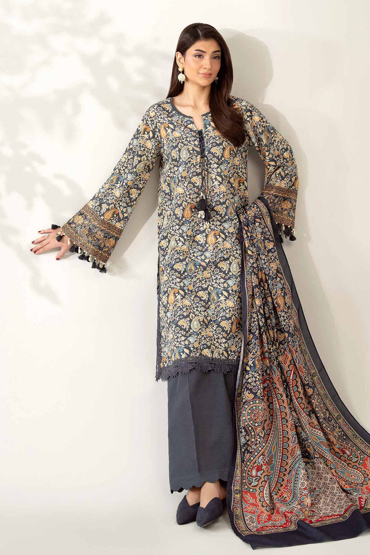Comfort crafted with cultural pride with this digitally printed embroidered three-piece from the latest unstitched Winter Collection.
