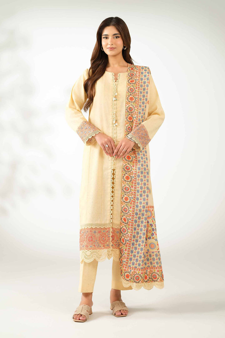 Threads that carry heritage forward with this digitally printed embroidered three-piece from the latest unstitched Winter Collection.