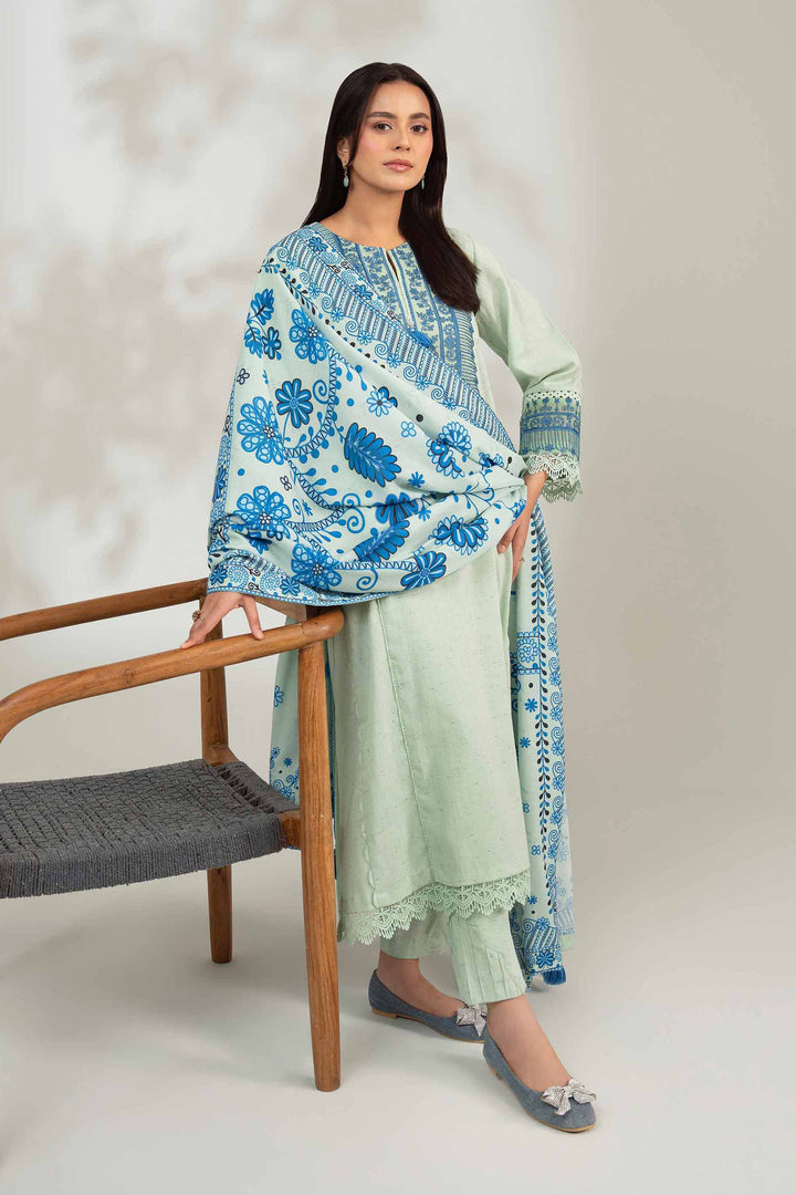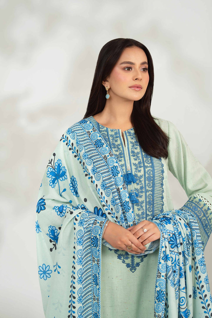 Designed with pride, worn with elegance with this digitally printed embroidered three-piece from the latest unstitched Winter Collection.