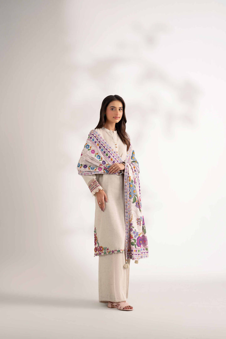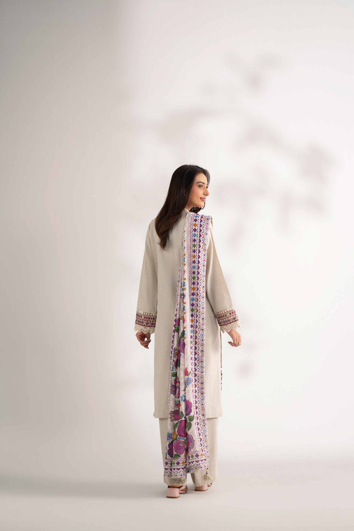 Designed with pride, worn with elegance with this digitally printed embroidered three-piece from the latest unstitched Winter Collection.