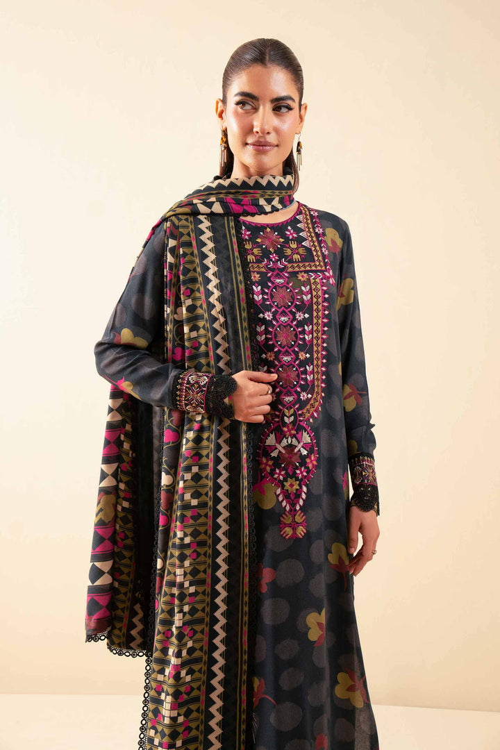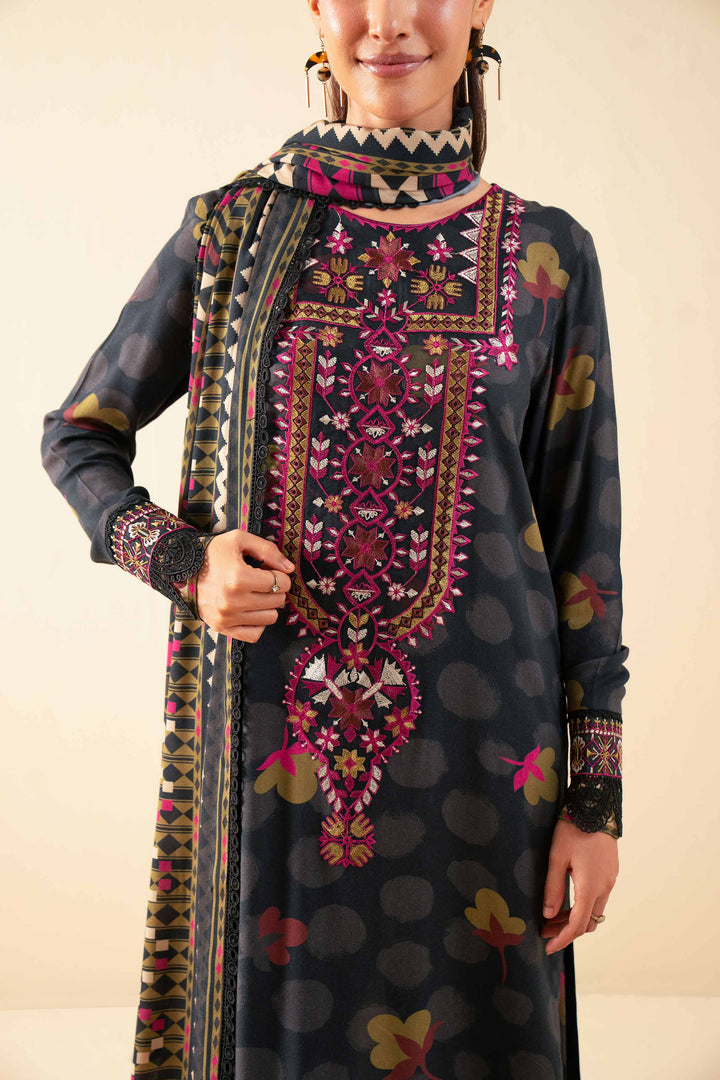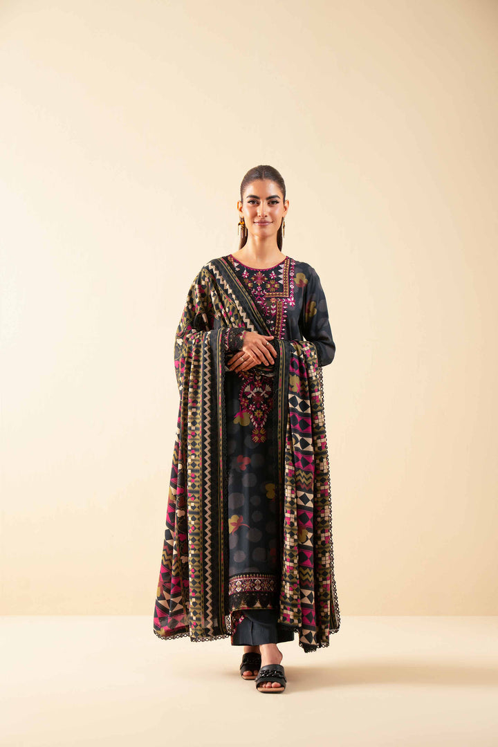 Celebrate your journey in style with this printed embroidered three-piece from the latest unstitched Winter Collection.
