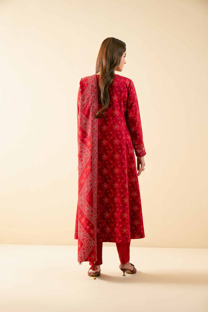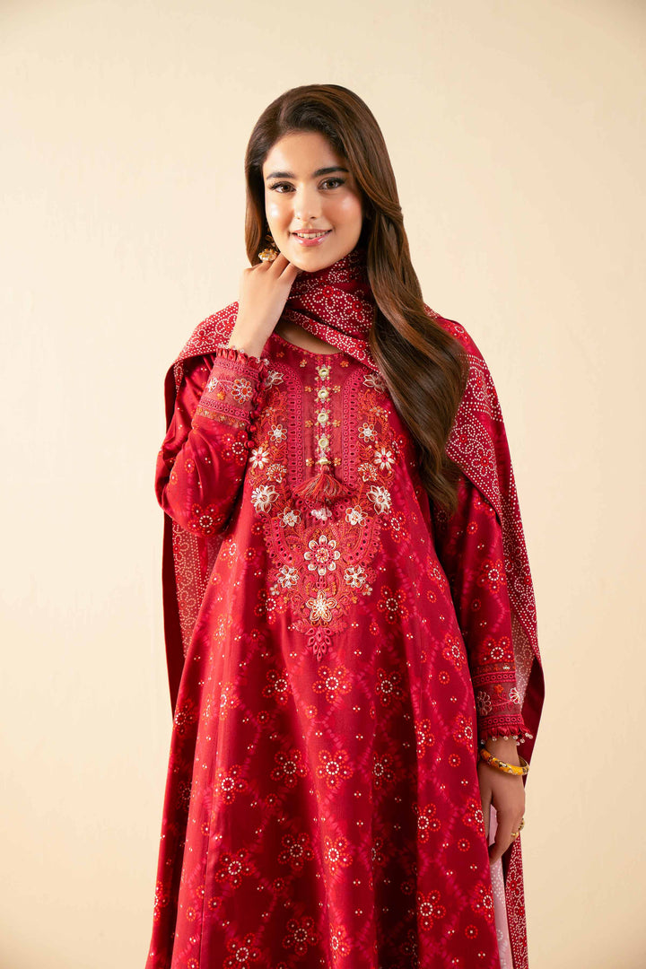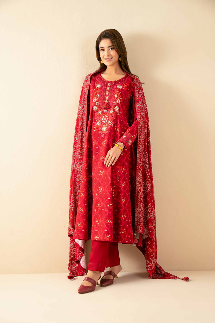 Effortless beauty, rooted in tradition with this printed embroidered three-piece from the latest unstitched Winter Collection.