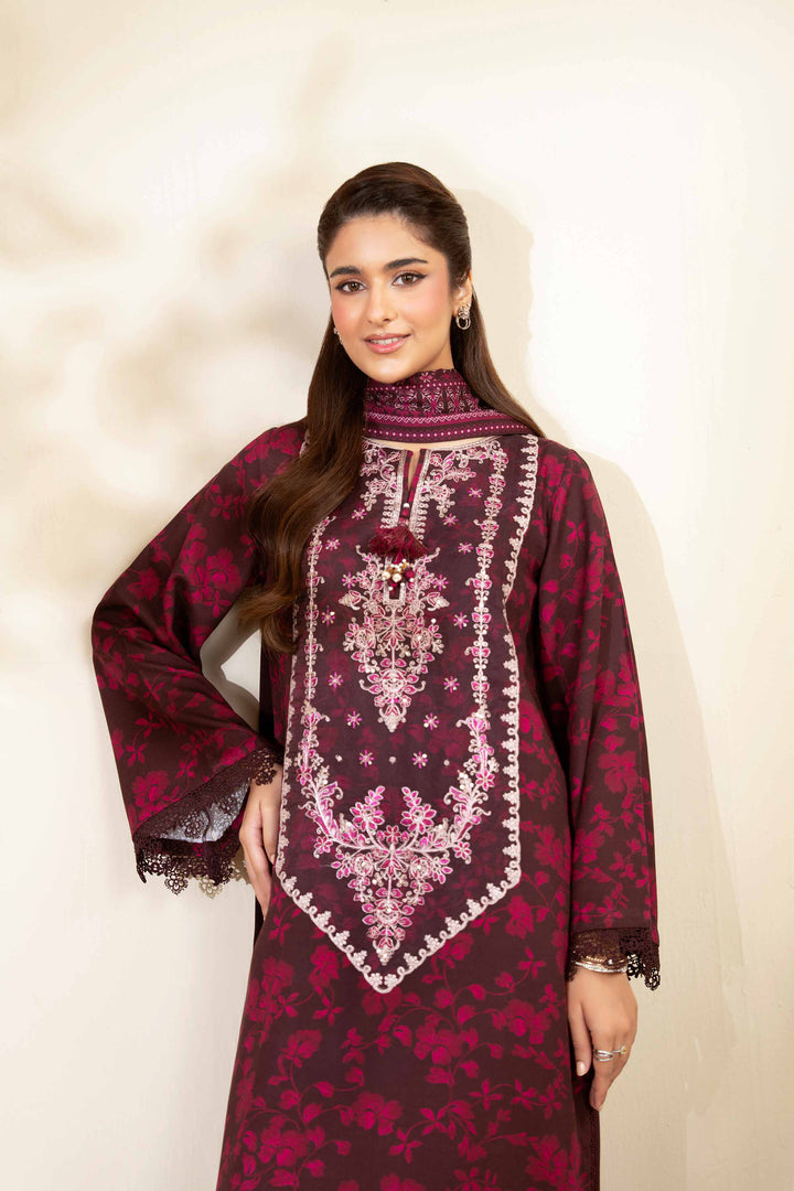 For the love of culture and comfort with this printed embroidered three-piece from the latest unstitched Winter Collection.