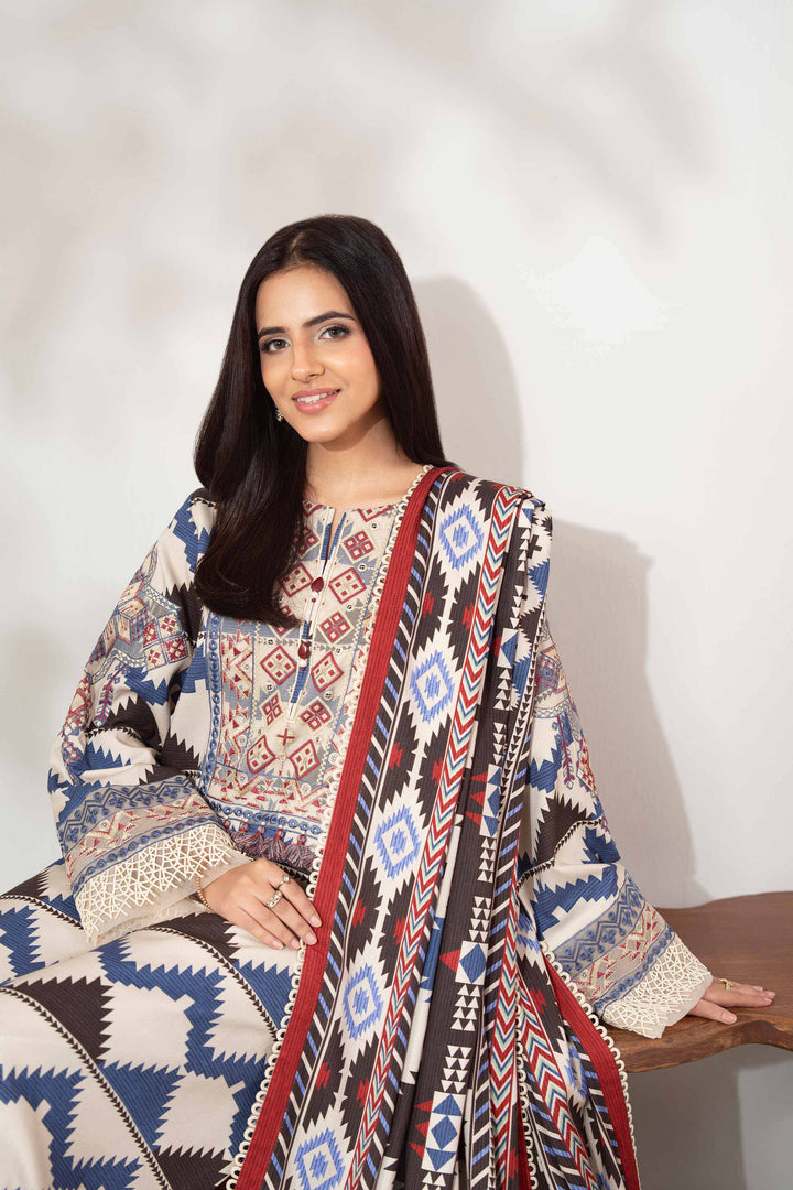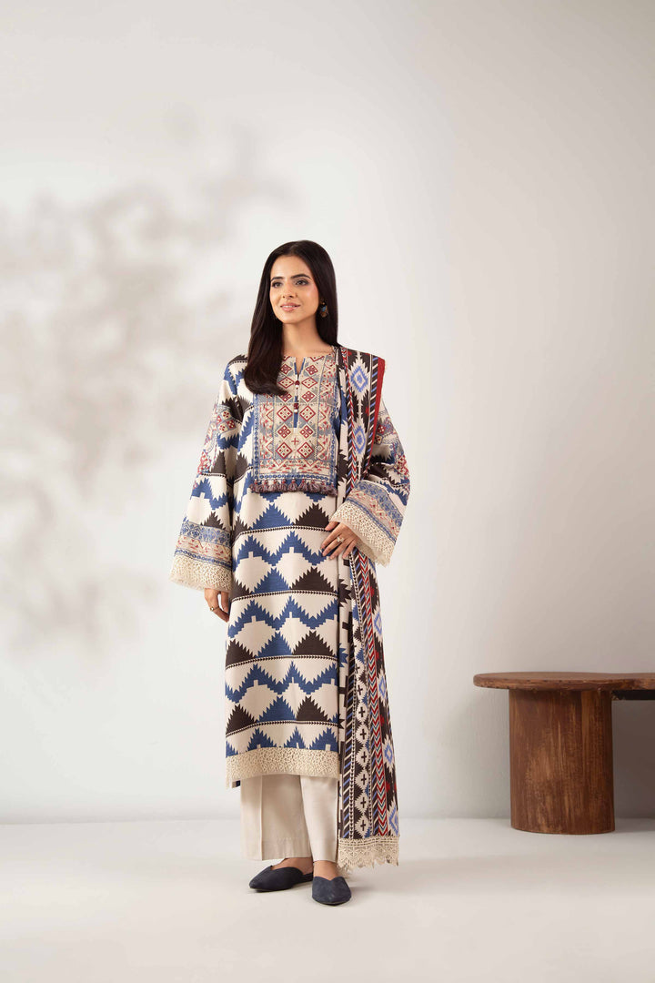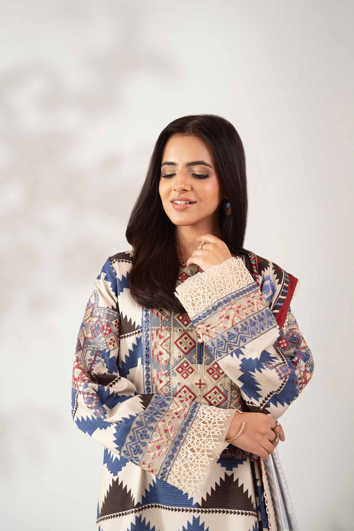 For the love of culture and comfort with this printed embroidered three-piece from the latest unstitched Winter Collection.