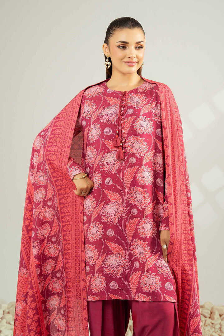 Fashion inspired by heritage, tailored for you with this printed three-piece from the latest unstitched Winter Collection.
