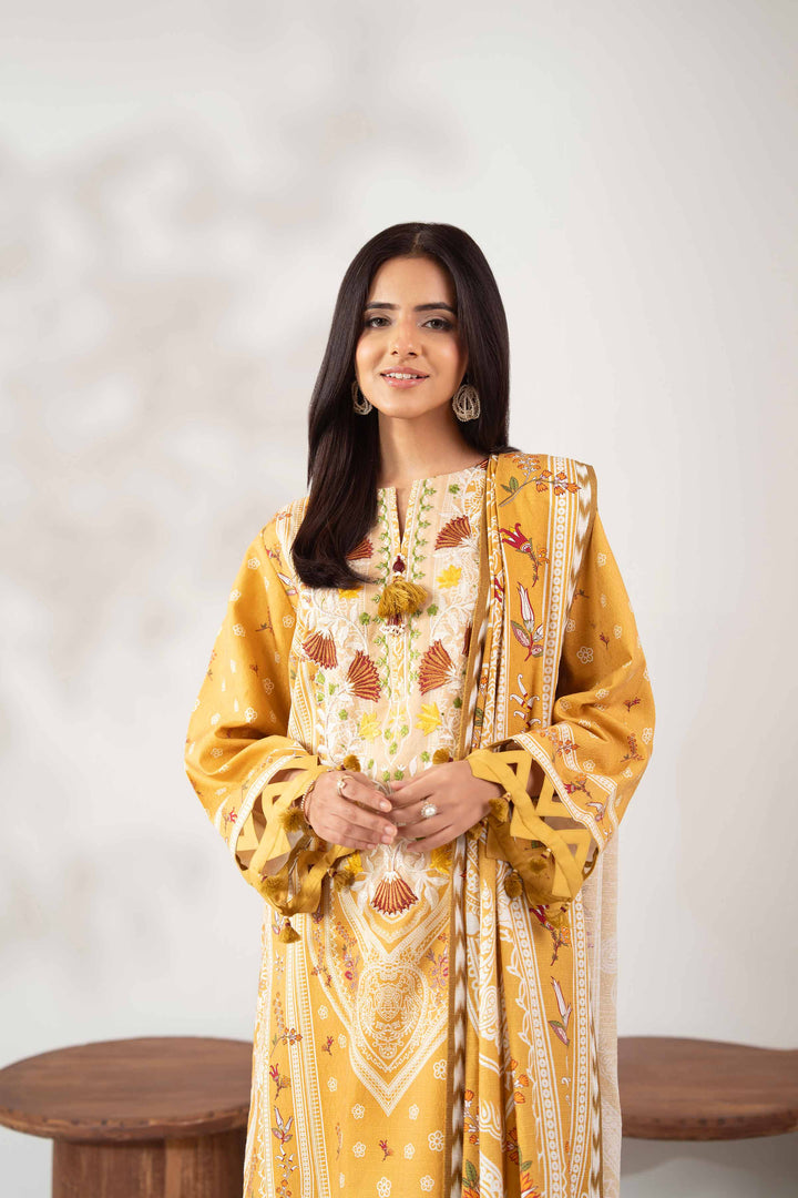 Timeless elegance, everyday ease with this digitally printed embroidered three-piece from the latest unstitched Winter Collection.