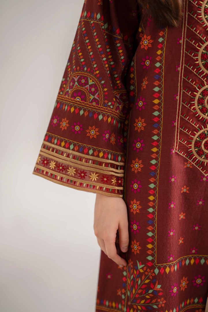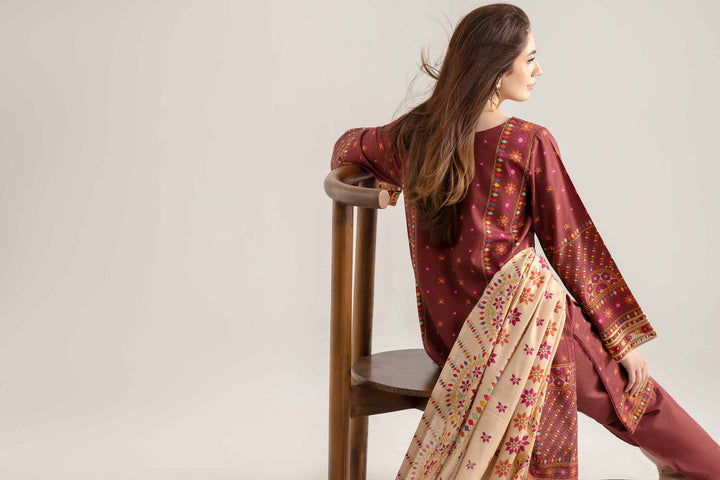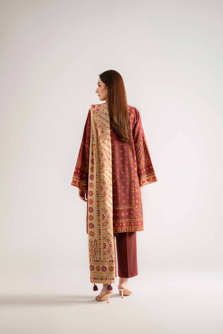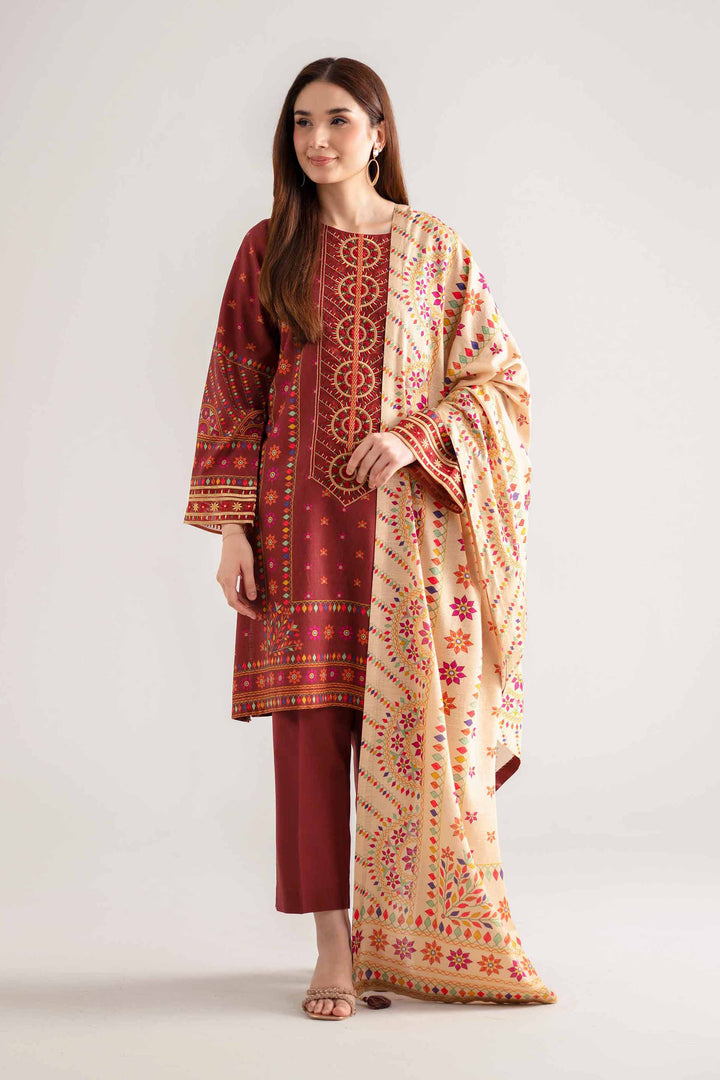 Where past and present meet in style with this digitally printed embroidered three-piece from the latest unstitched Winter Collection.