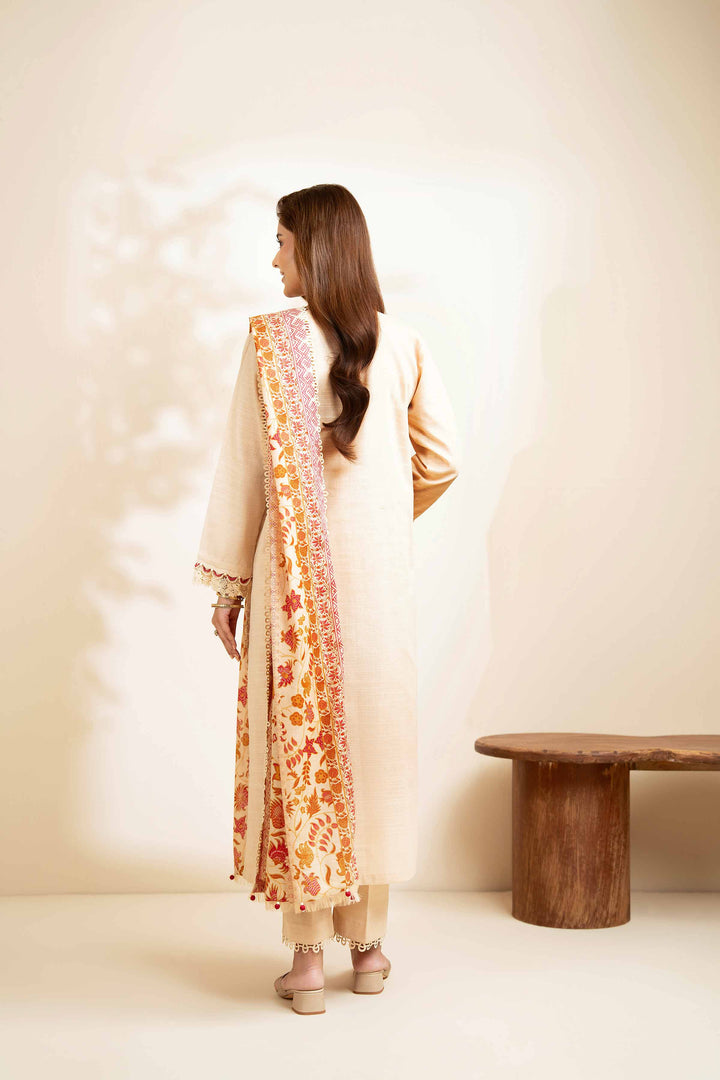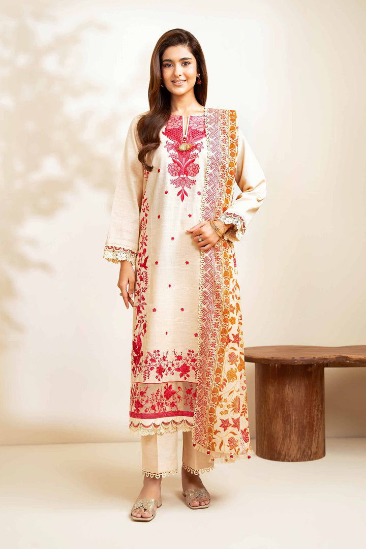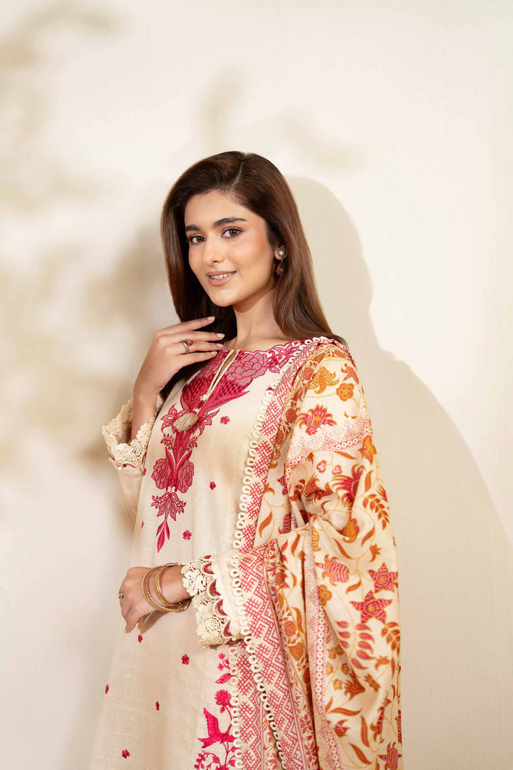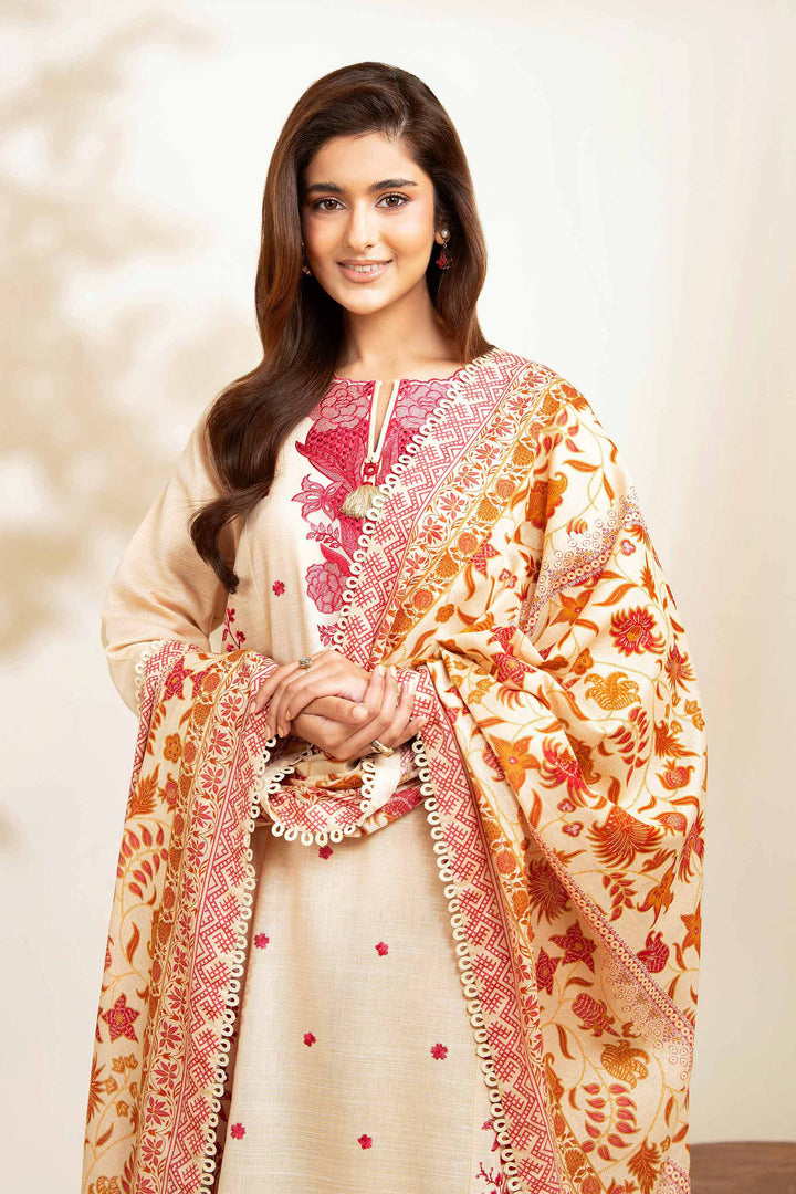 Wear your heritage with effortless pride with this printed embroidered three-piece from the latest unstitched Winter Collection.