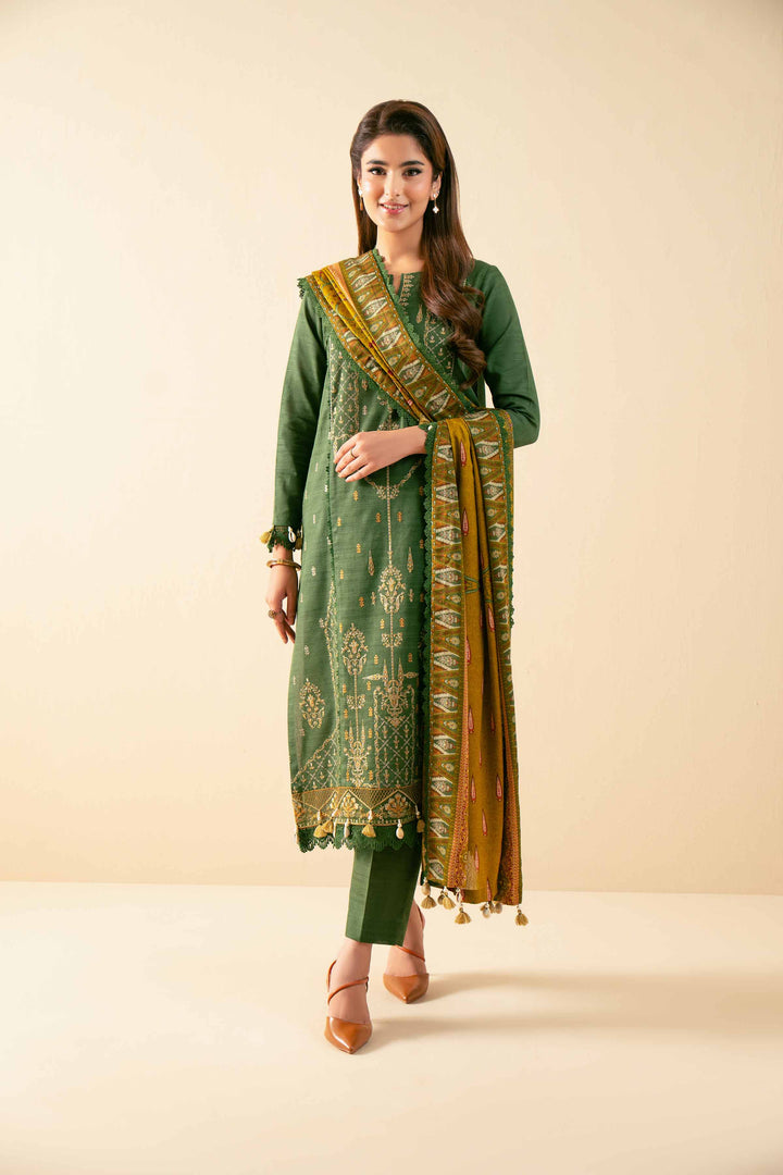 Wear your heritage with effortless pride with this printed embroidered three-piece from the latest unstitched Winter Collection.