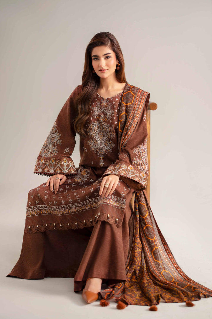 Crafted with culture, styled with passion with this digitally printed embroidered three-piece from the latest unstitched Winter Collection.