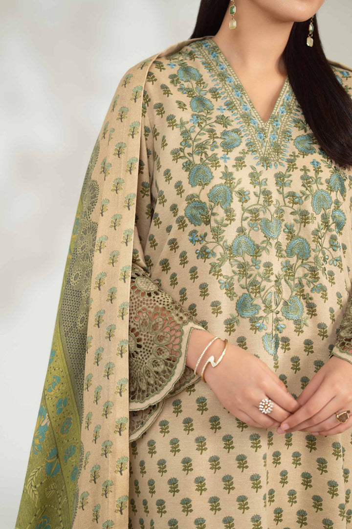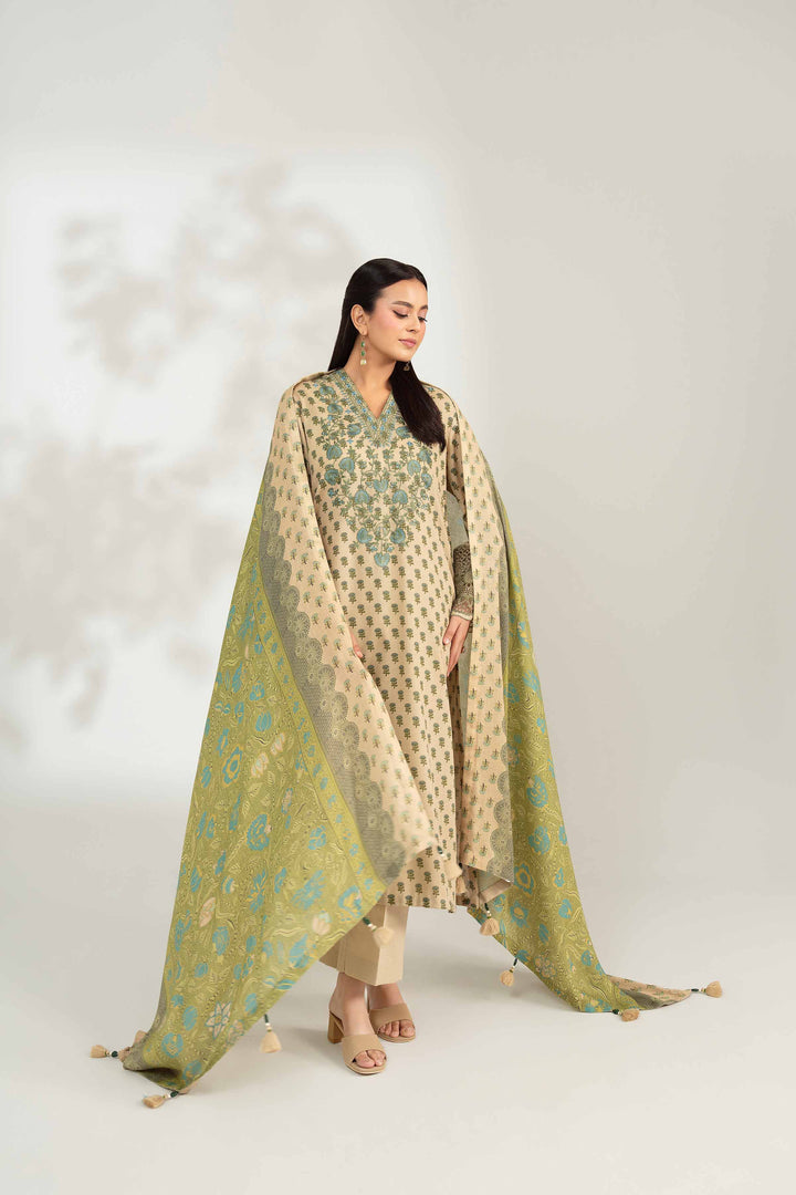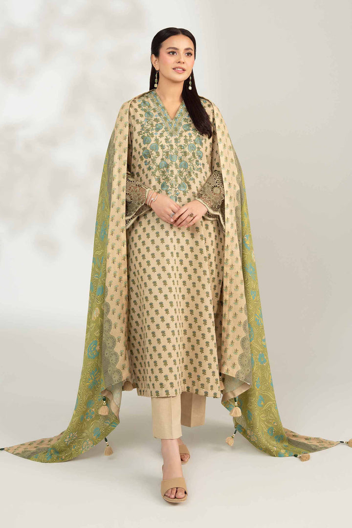 The perfect harmony of comfort and elegance with this digitally printed embroidered three-piece from the latest unstitched Winter Collection.