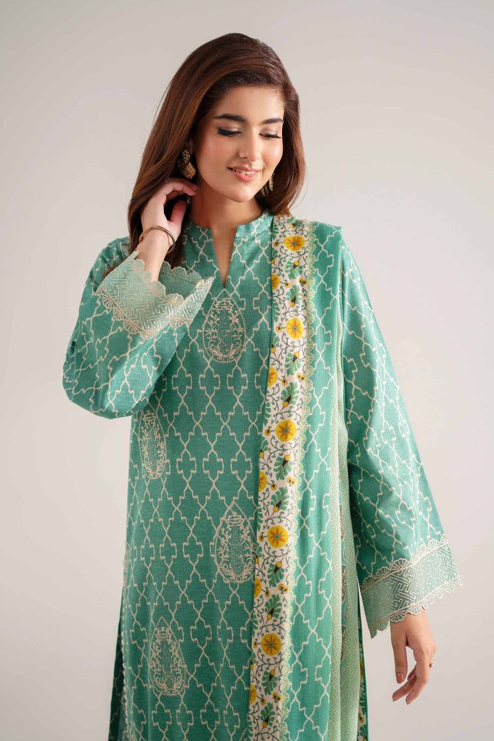 Where craftsmanship meets cultural beauty with this digitally printed embroidered three-piece from the latest unstitched Winter Collection.
