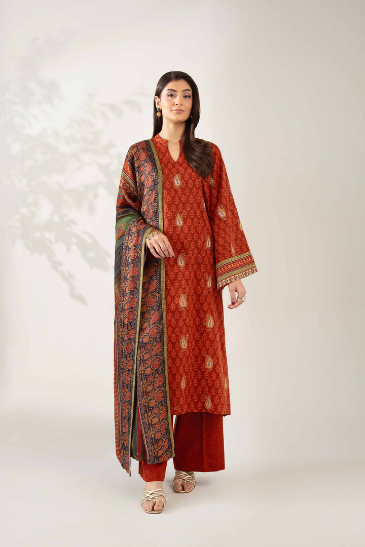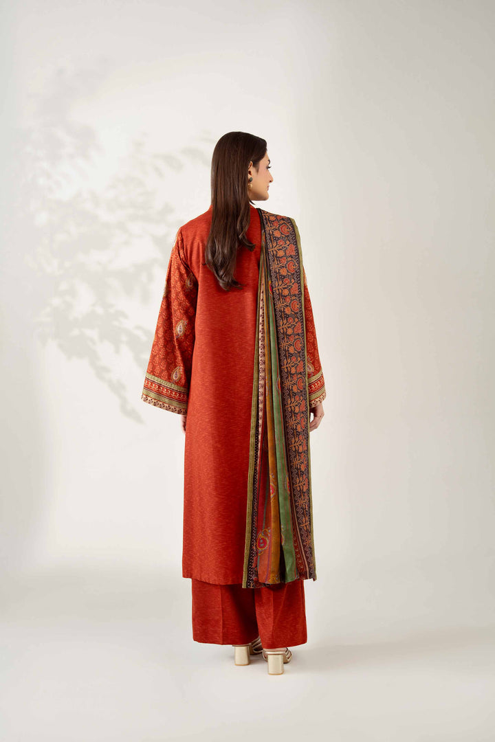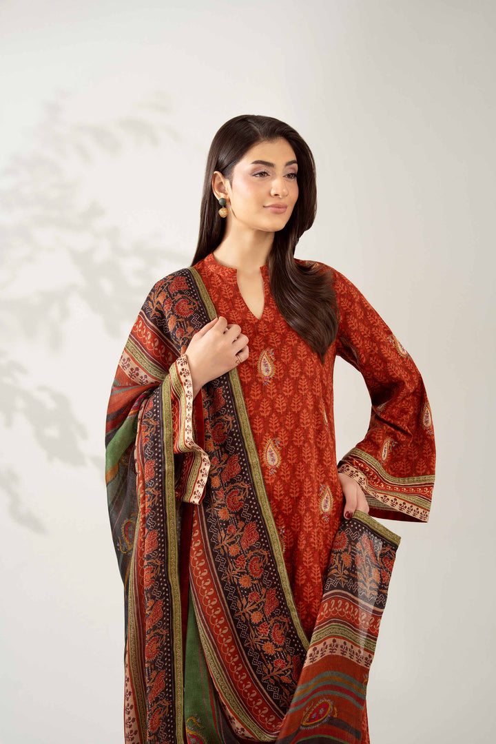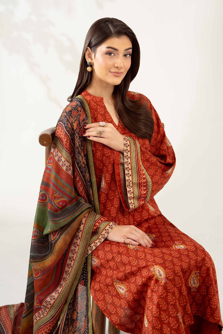 Woven with history, worn with pride with this digitally printed embroidered three-piece from the latest unstitched Winter Collection.