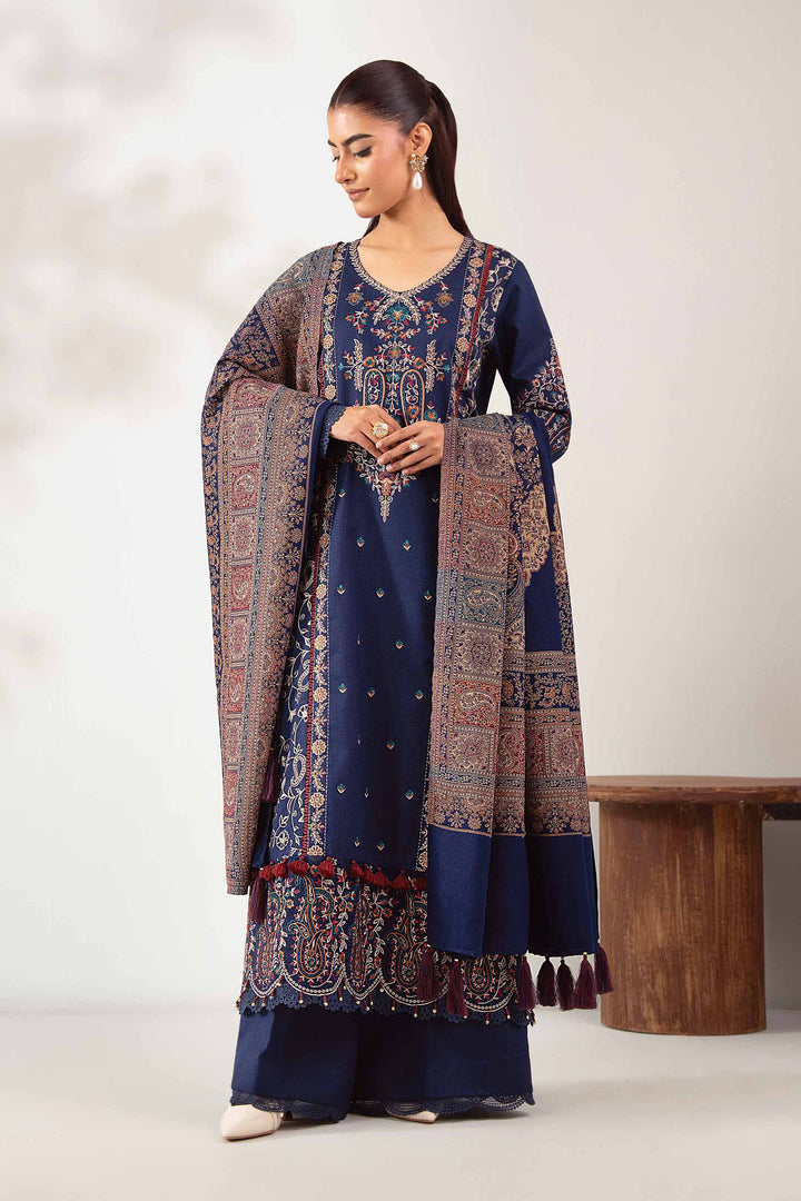 Crafted for cultural expression with this embroidered three-piece from the latest unstitched Winter Collection.