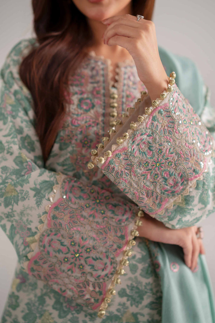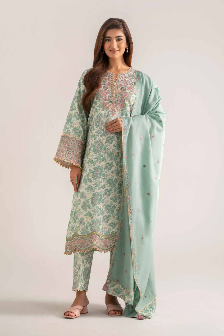 Effortless elegance, everyday wear with this digitally printed embroidered three-piece from the latest unstitched Winter Collection.