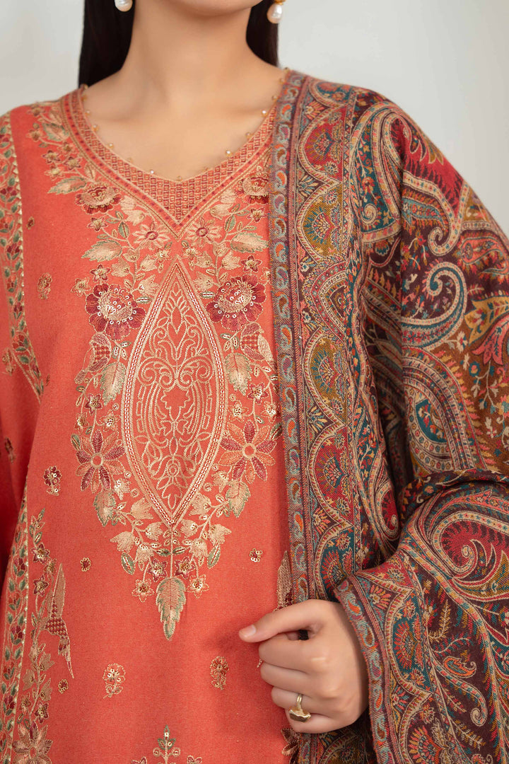 Style born from tradition, shaped for you with this embroidered three-piece from the latest unstitched Winter Collection.