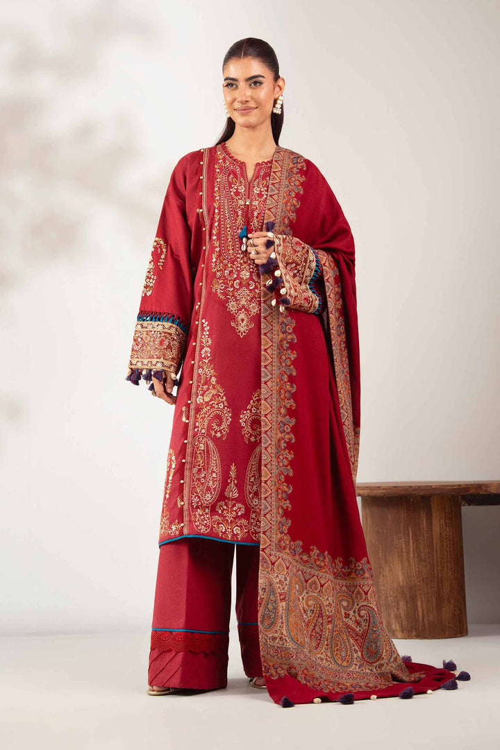 Style born from tradition, shaped for you with this embroidered three-piece from the latest unstitched Winter Collection.