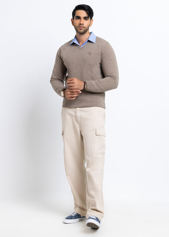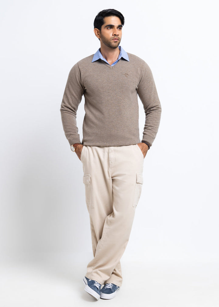 Ng-Beige-V-Neck Full Sleeves Sweater (501-14)