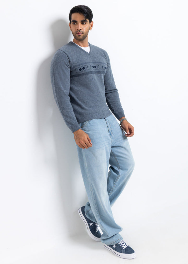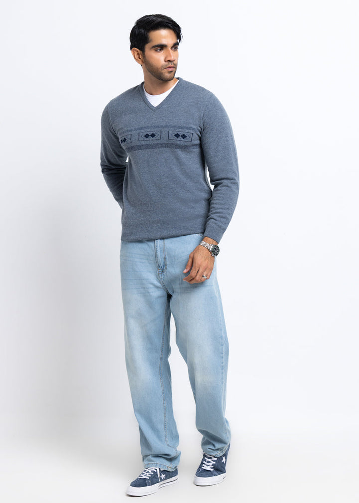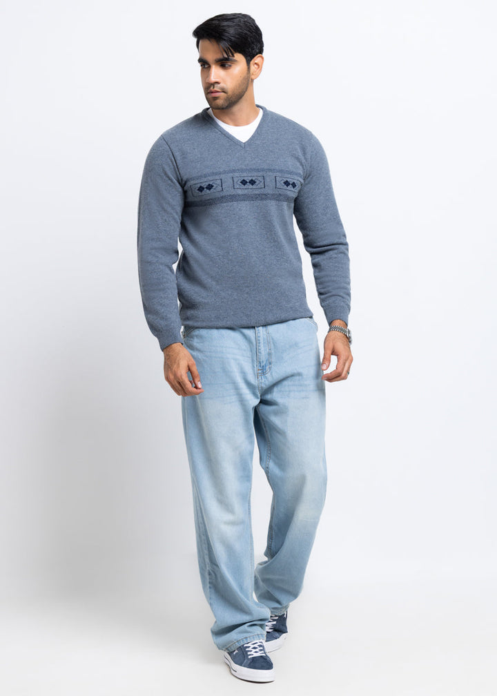 V-Blue-V-Neck Full Sleeves Sweater (503-14)