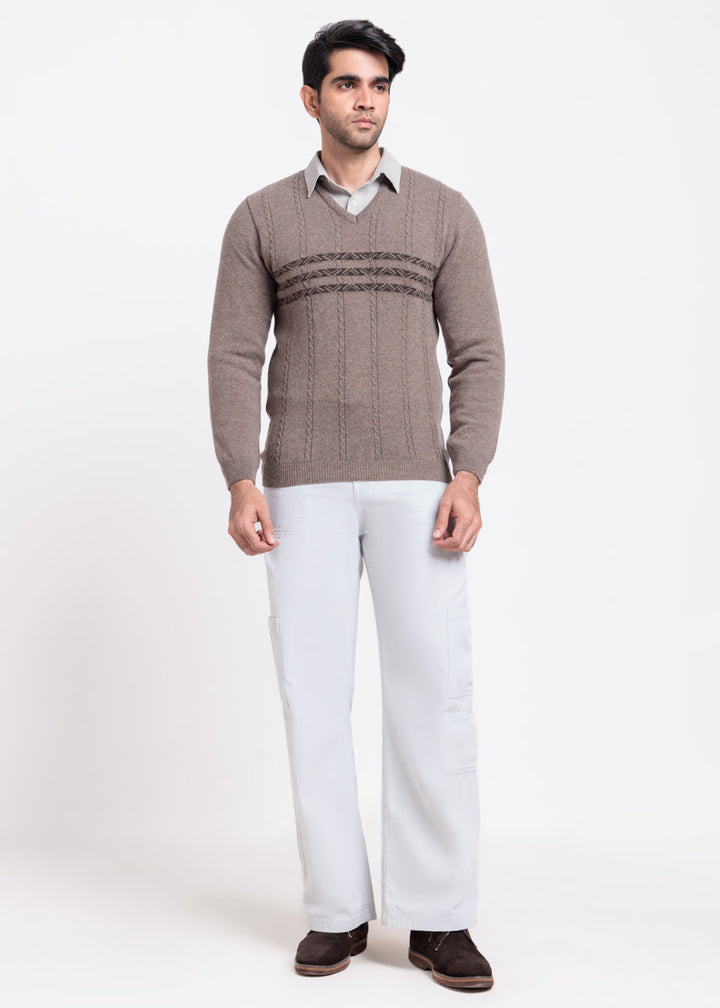 Wd-Smoke-V-Neck Full Sleeves Sweater (515-14)