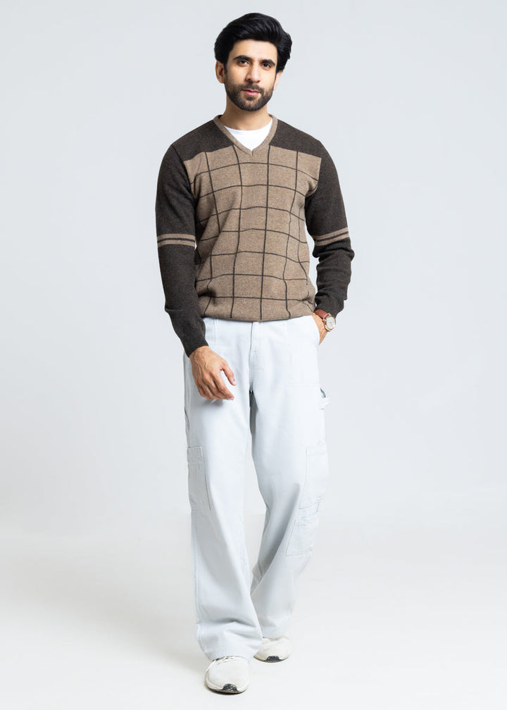 Linen-V-Neck Full Sleeves Sweater (522-14)