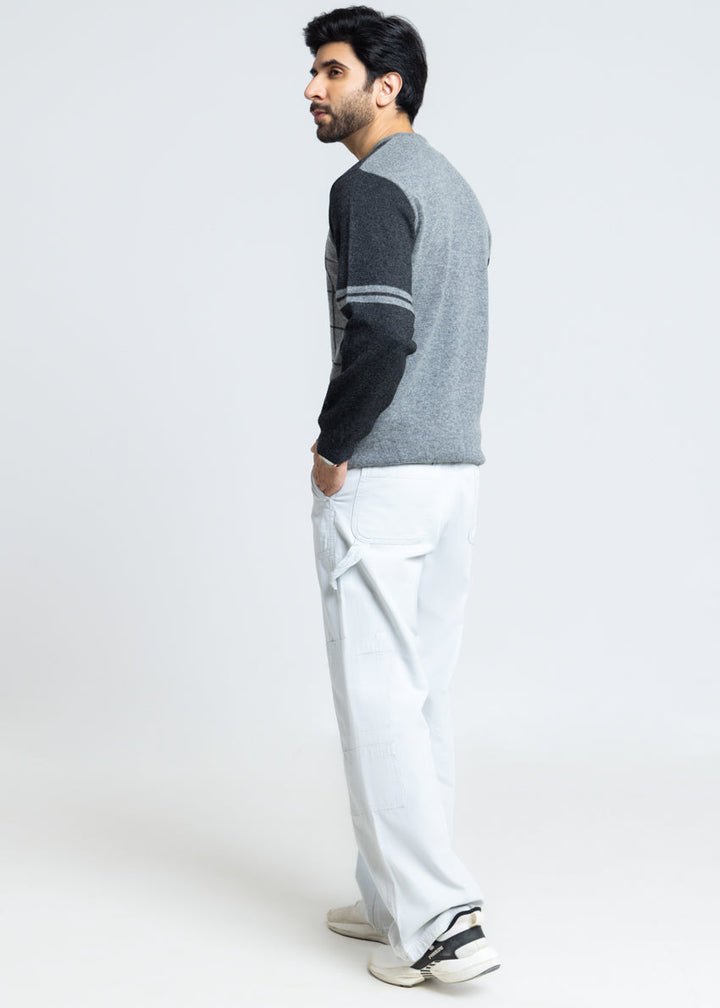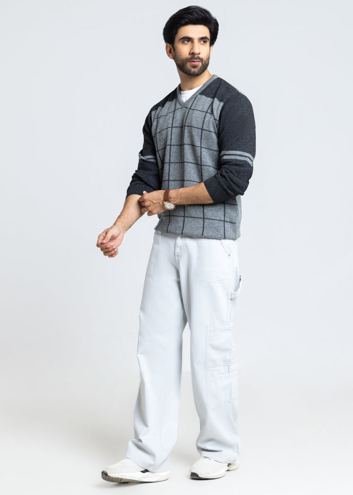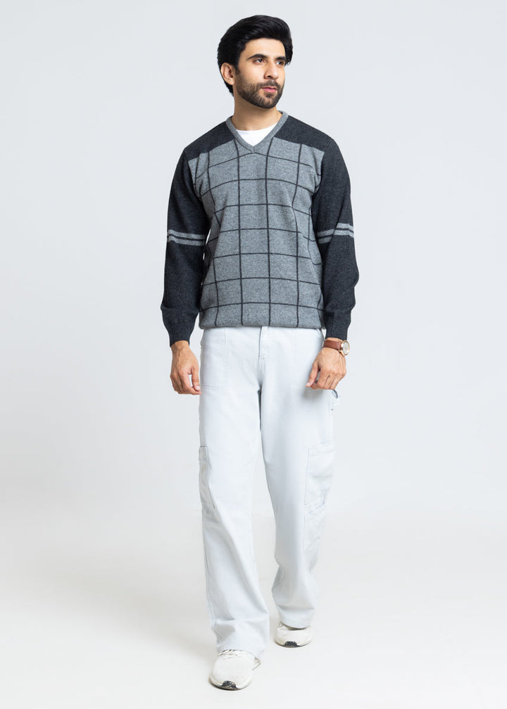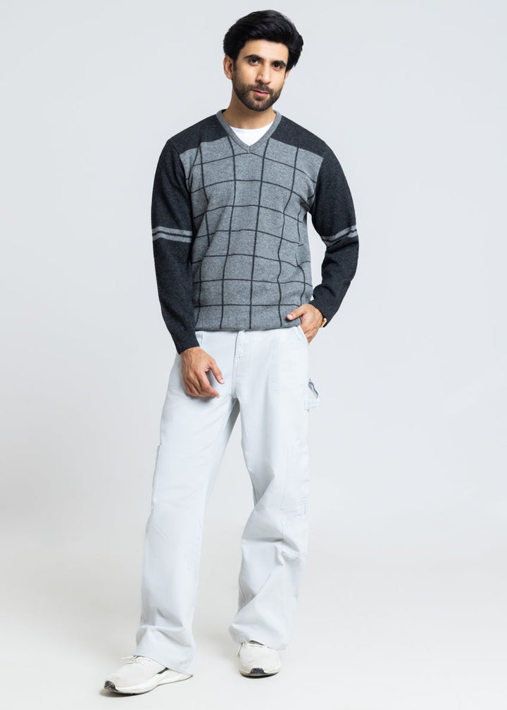 St-Grey-V-Neck Full Sleeves Sweater (522-14)