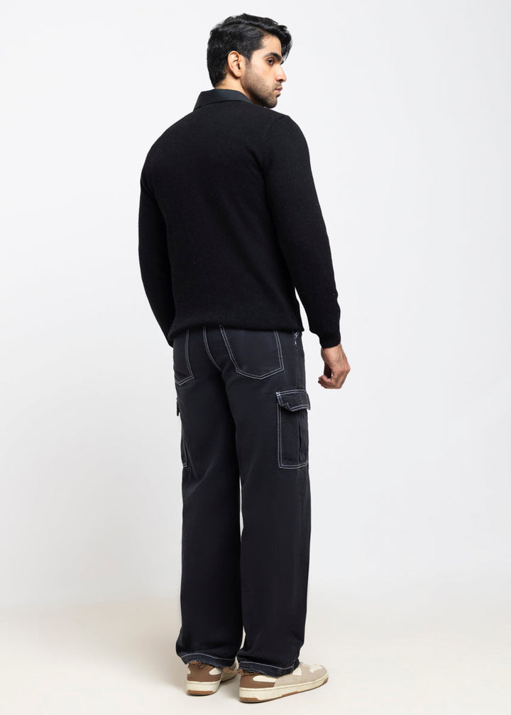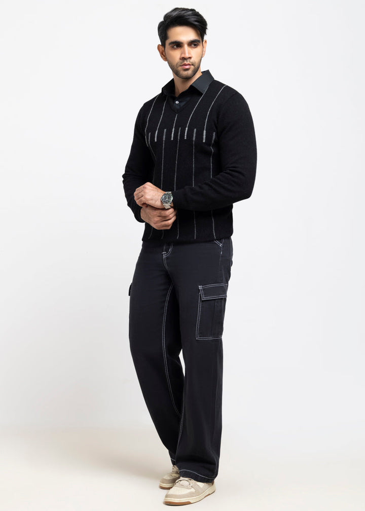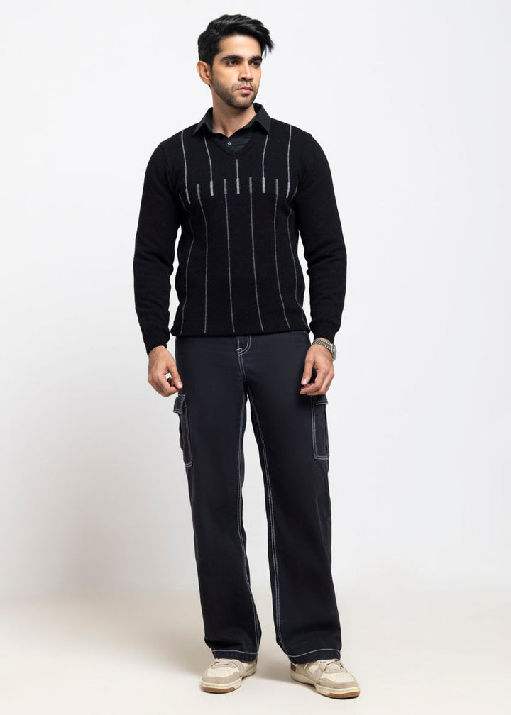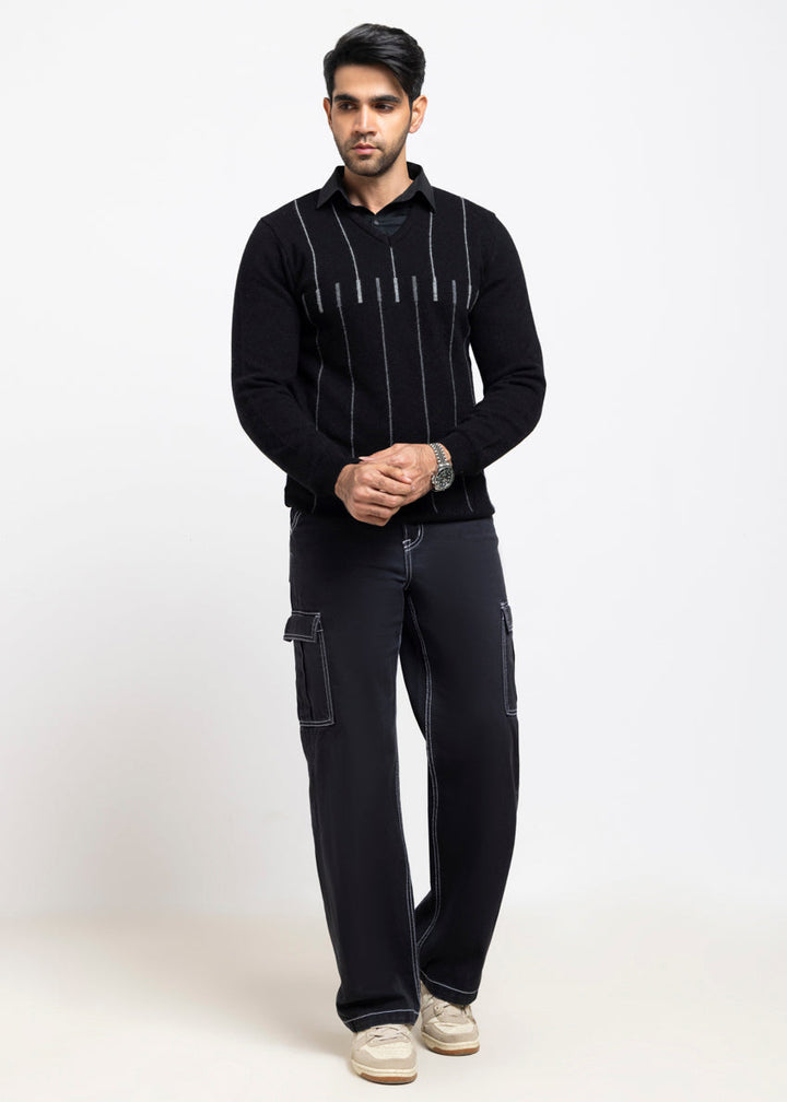 J-Black-V-Neck Full Sleeves Sweater (523-14)