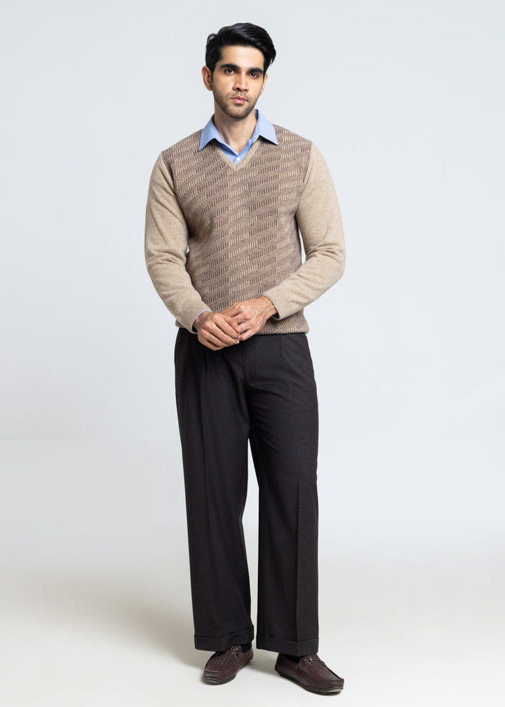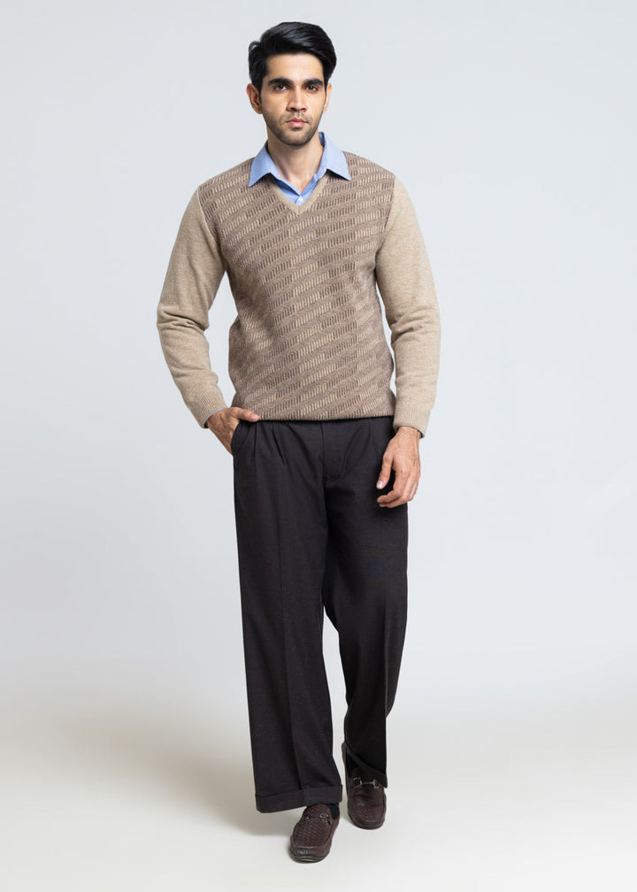 Mushroom-V-Neck Full Sleeves Sweater (524-14)
