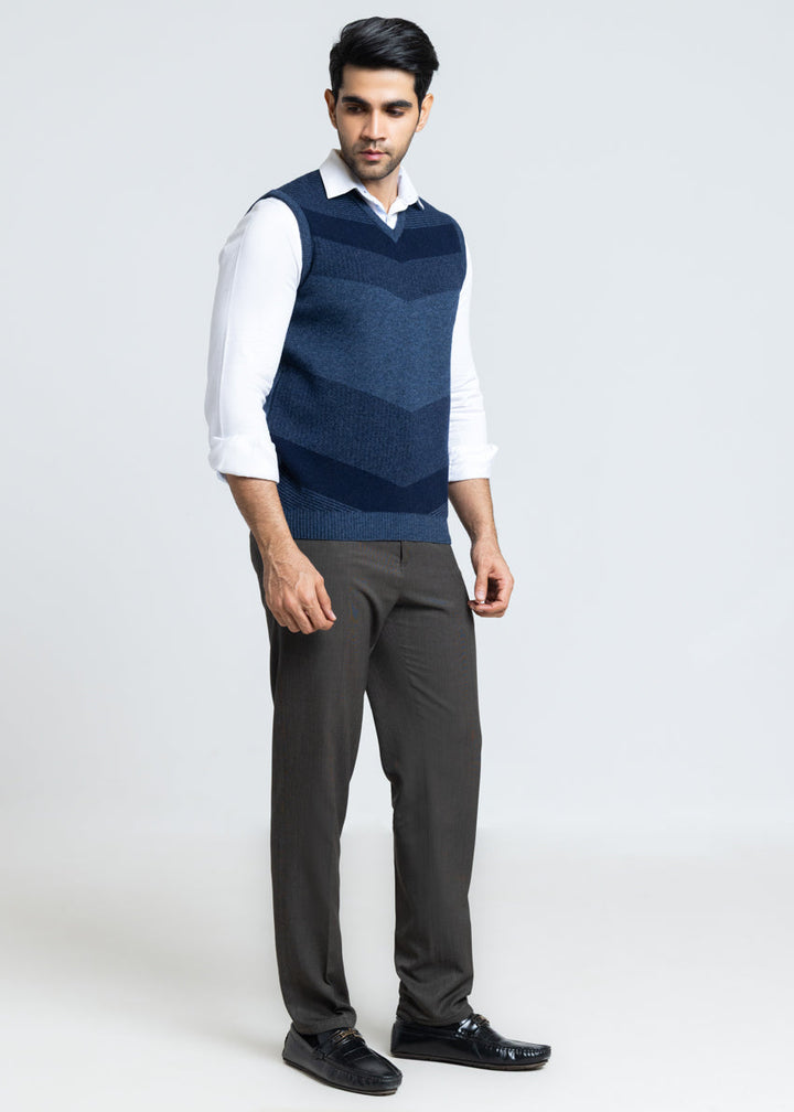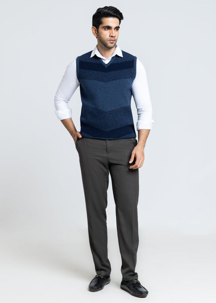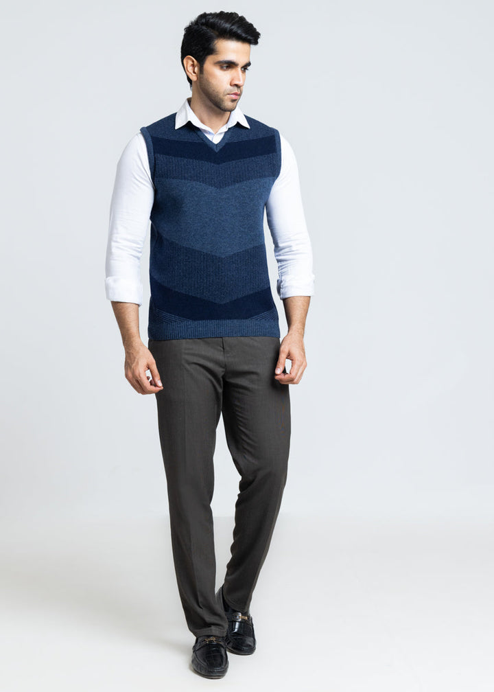 N-D-Blue-V-Neck Sando Sweater (660-14)