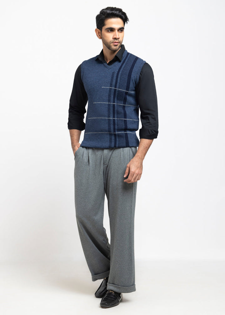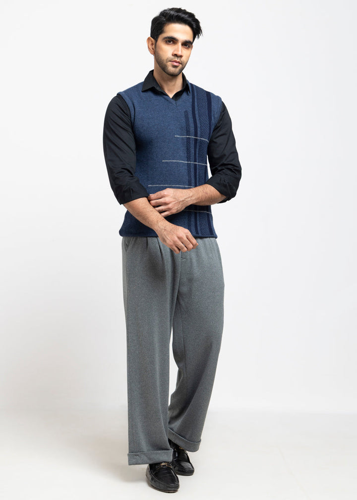 N-D-Blue-V-Neck Sando Sweater (668-14)