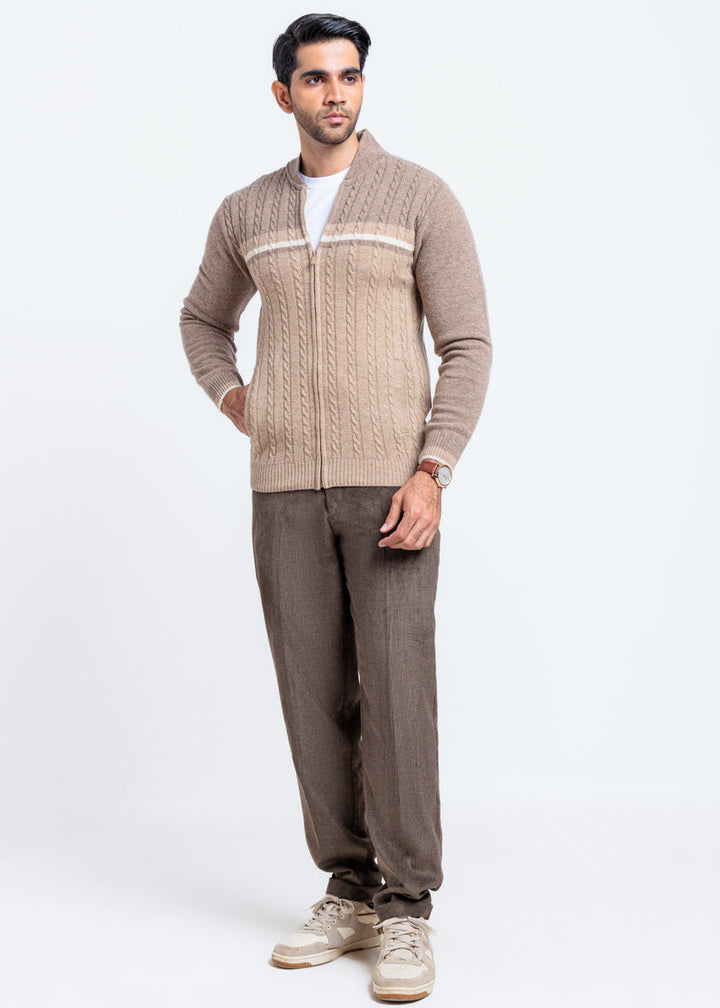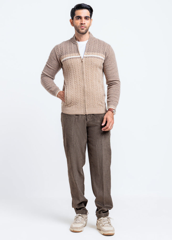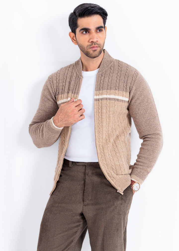 Mashroom-Baseball Collar Zipper Full Sleeves Sweater (754-14)