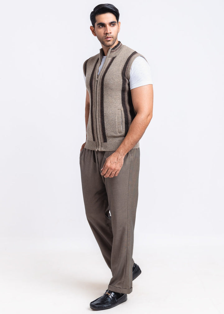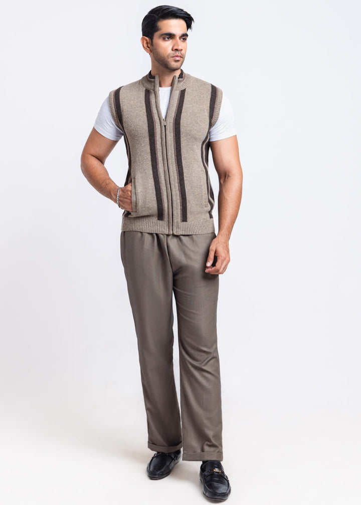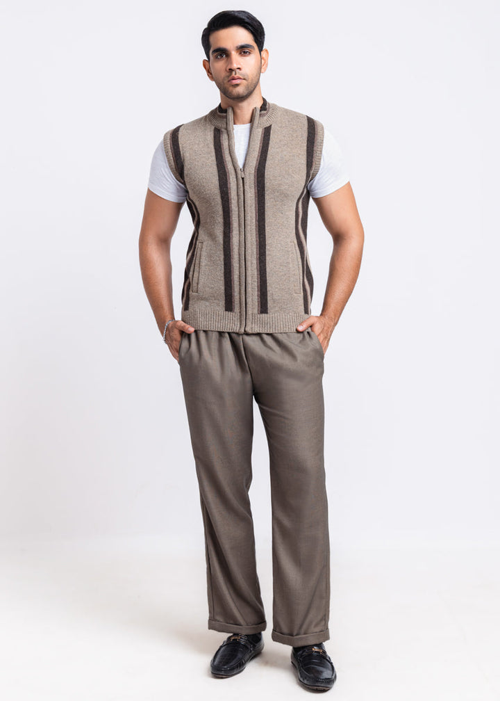 Nl-Beige-Turtle Neck Zipper Sando Sweater (783-14)