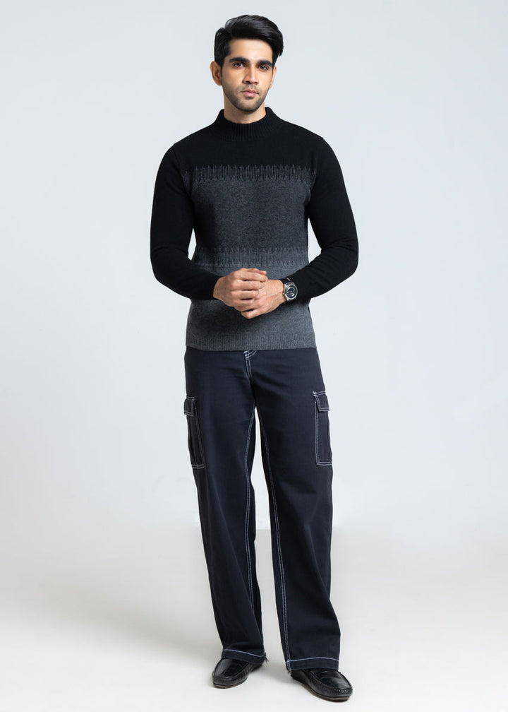 J-Black-Round Turtle Neck Full Sleeves Sweater (854-14)