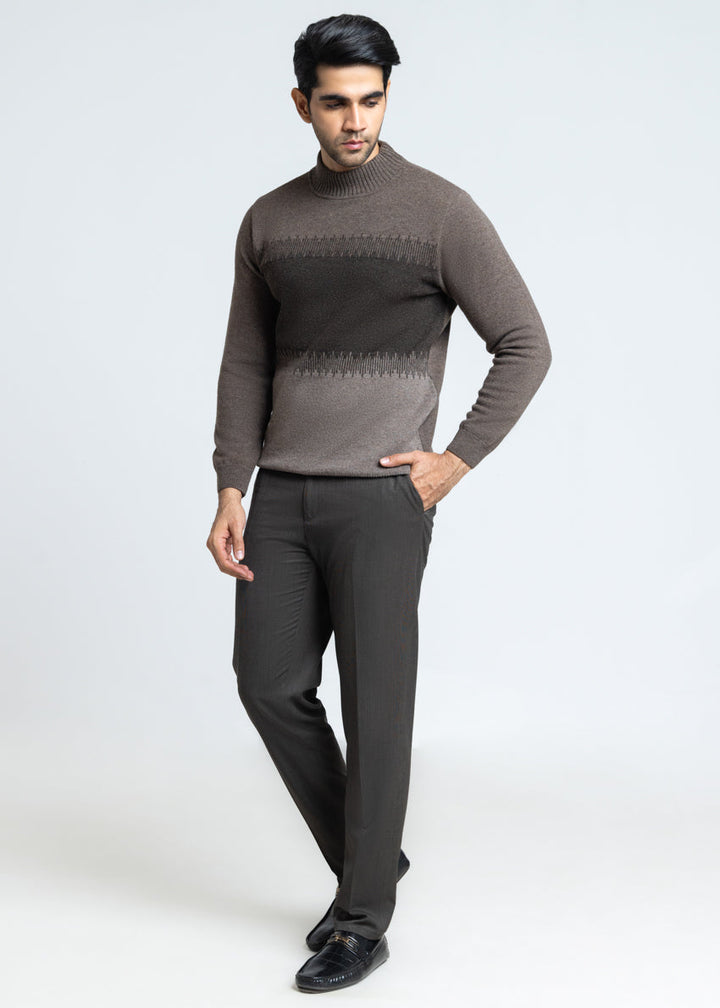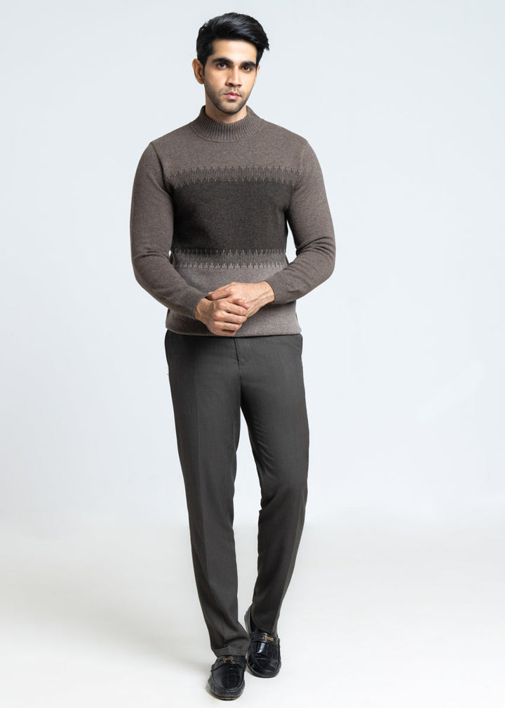 N-Brown-Round Turtle Neck Full Sleeves Sweater (854-14)