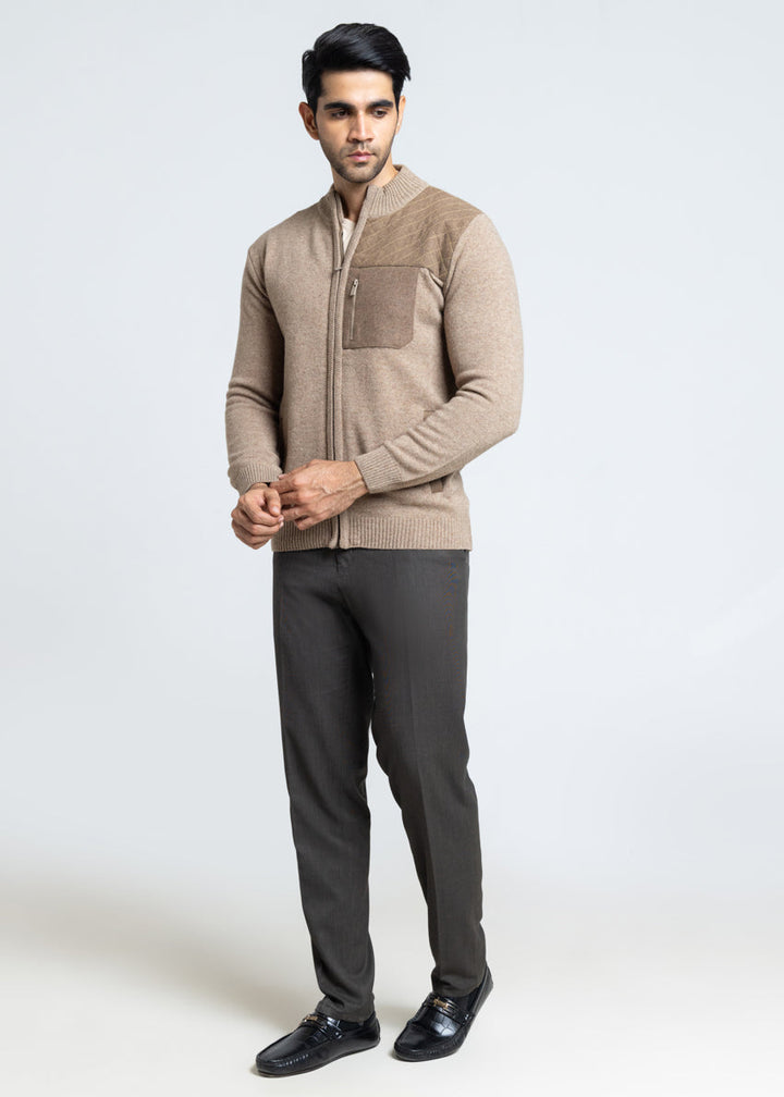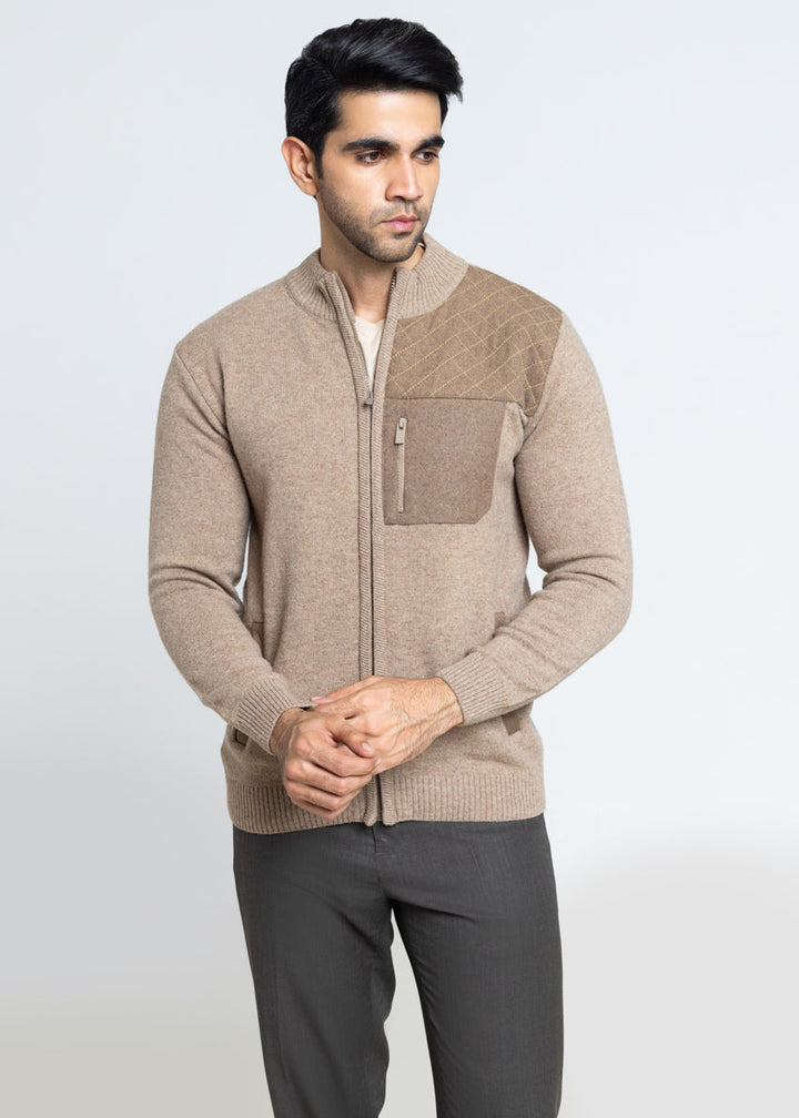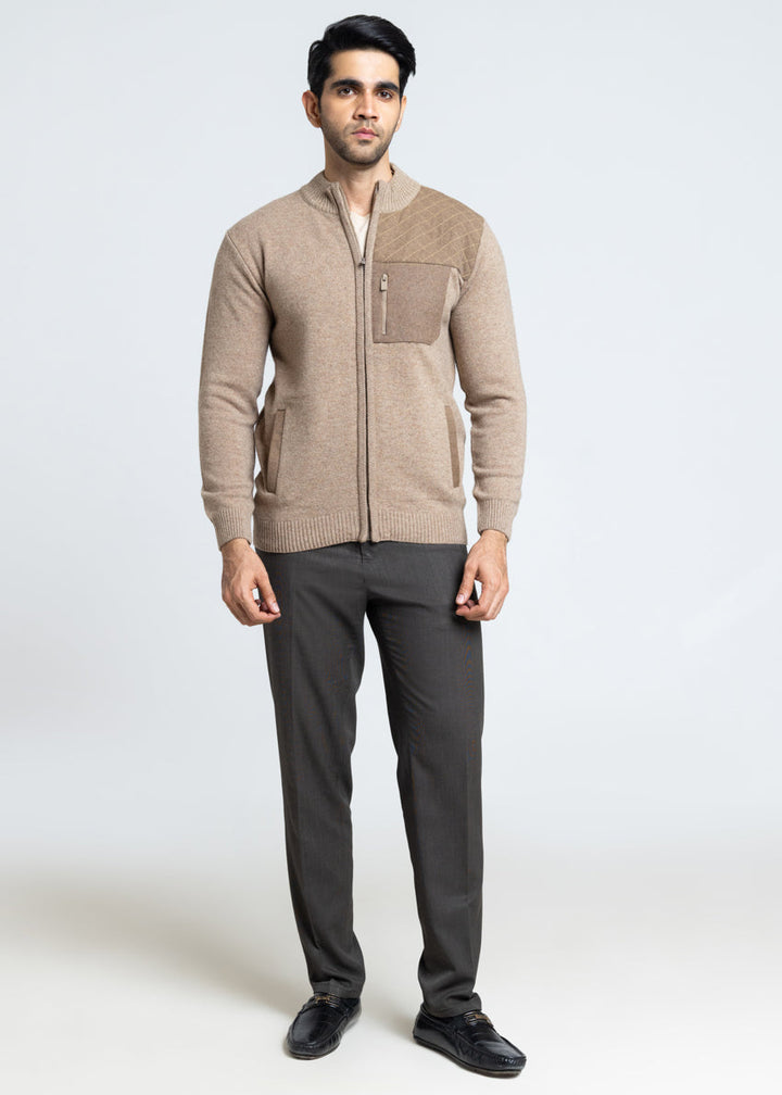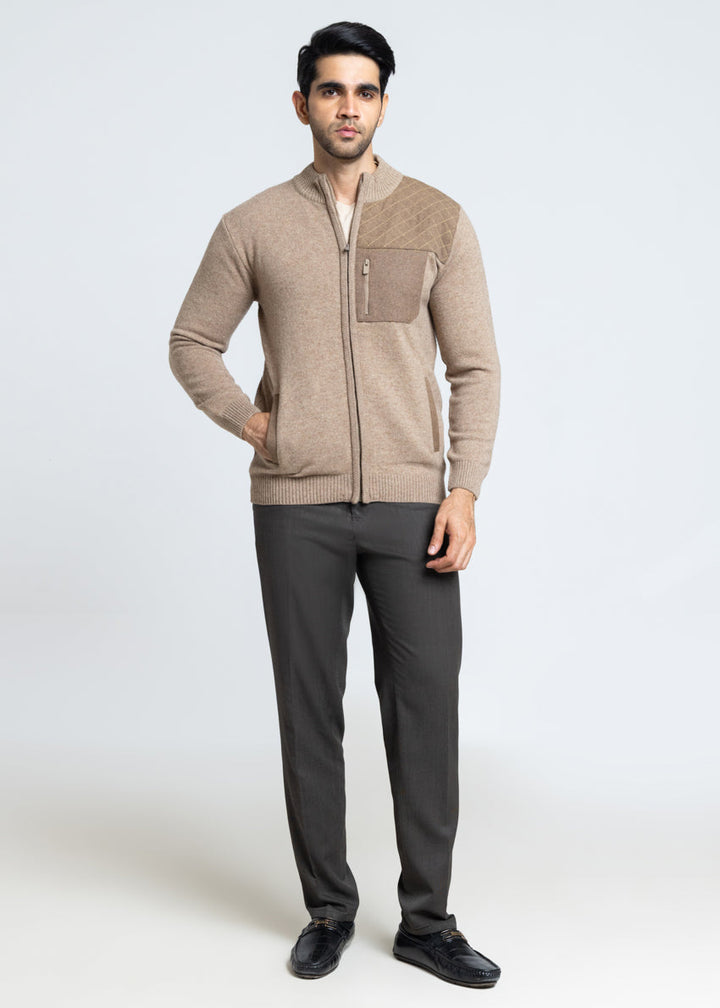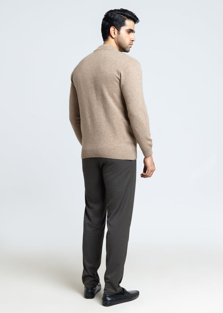 M-Beige-Turtle Neck Zipper Full Sleeves Sweater (910-14)