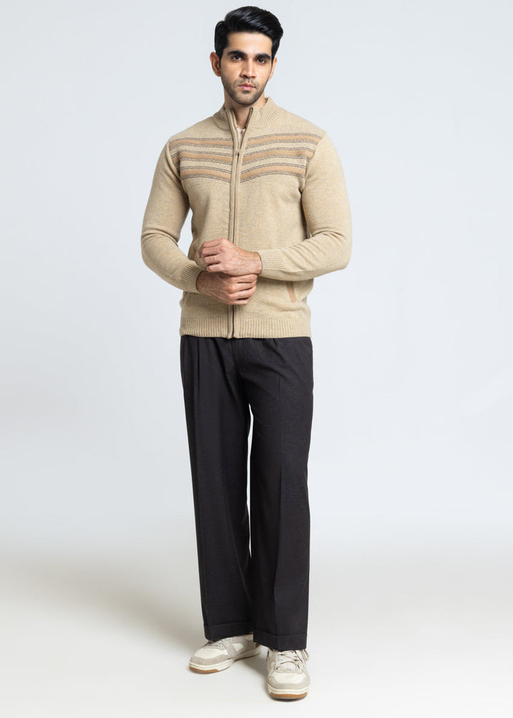Wheat-Turtle Neck Zipper Full Sleeves Sweater (912-14)