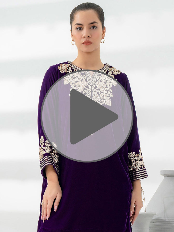 2 Piece Velvet Suit-Embroidered (Pret)