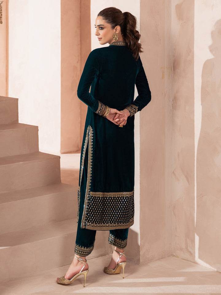 - Dyed embroidered wide-leg trouser with elasticized waistband