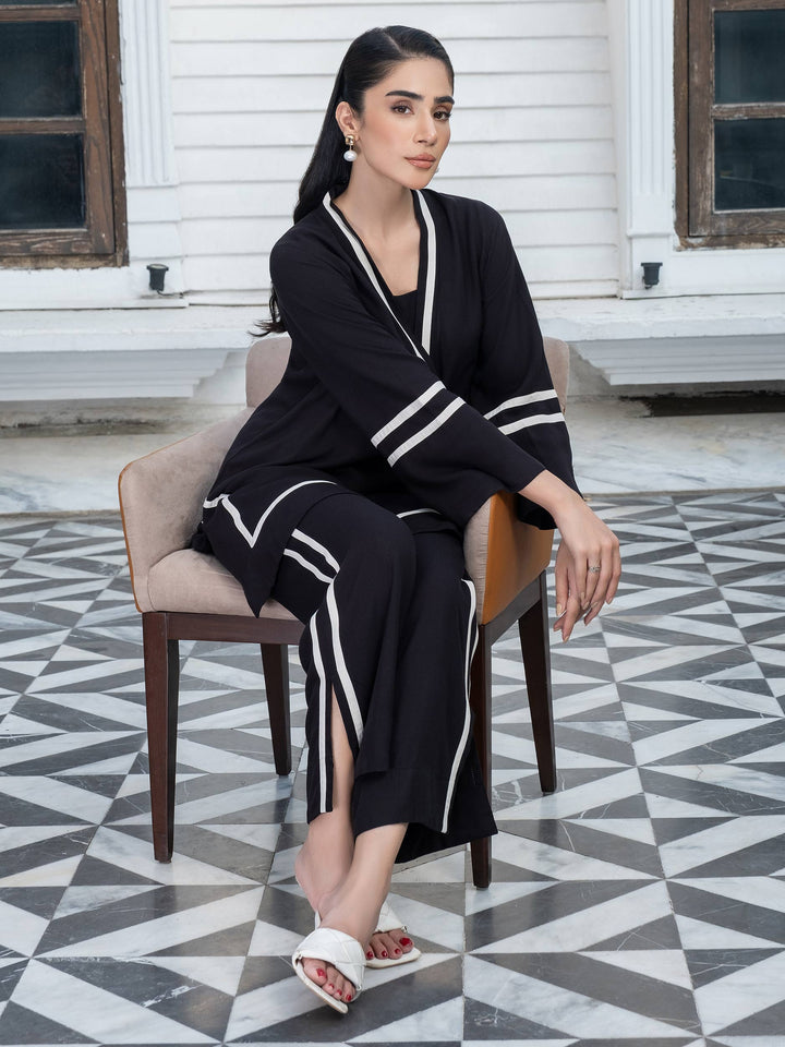 - Dyed color block wide-leg trousers with an elasticised waistband