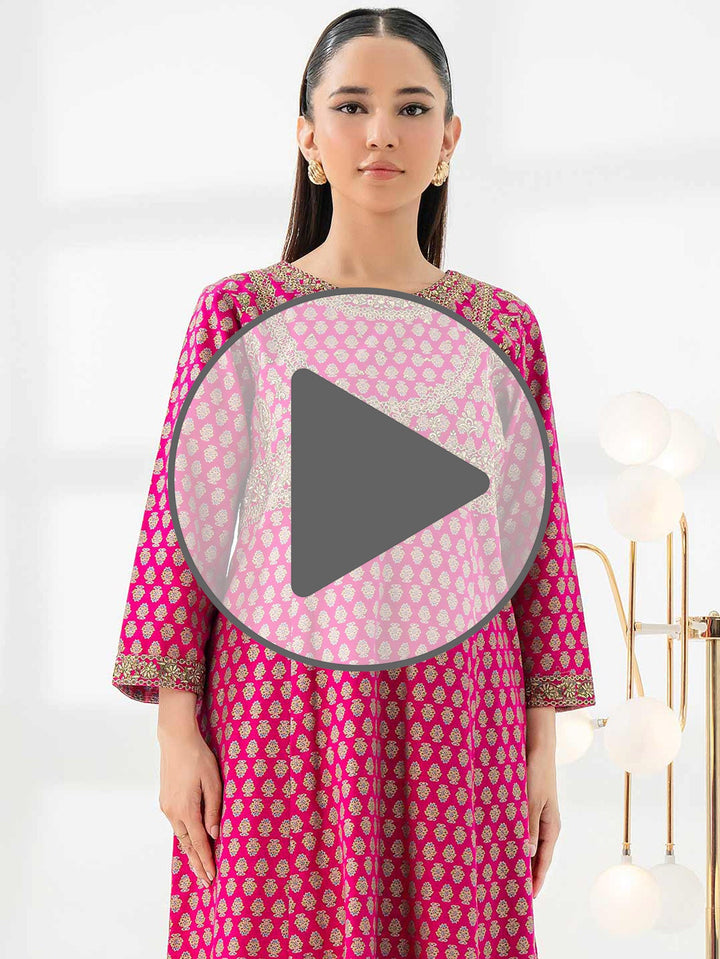 - Gold paste print embroidered frock