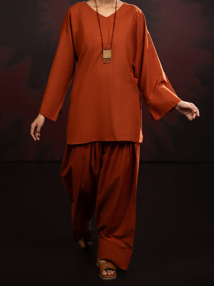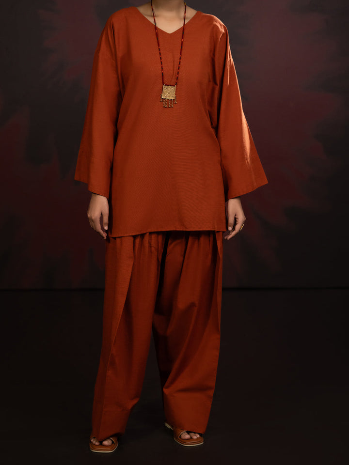 Rust Light Slub Khaddar 2Pc Stitched - AL-2PS-LKS-1087