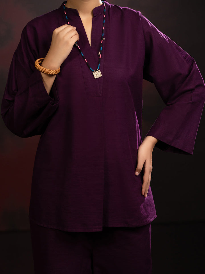 Purple Light Slub Khaddar 2Pc Stitched - AL-2PS-LKS-1089