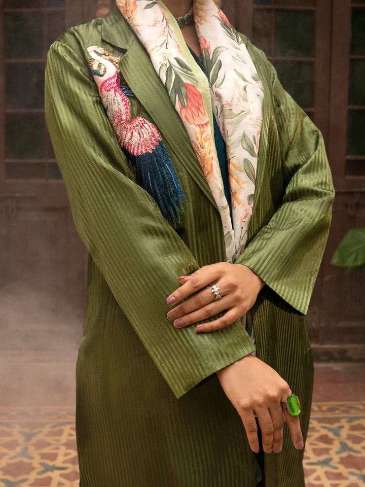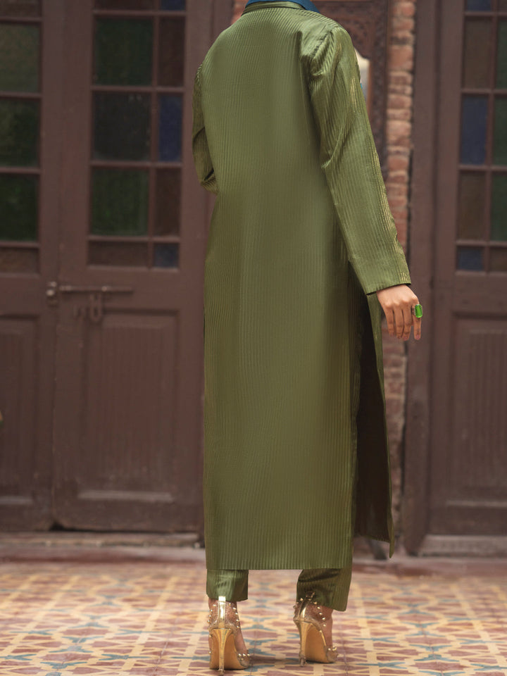 Green Stripe Formal 3Pc Stitched - AL-3PS-LS-421