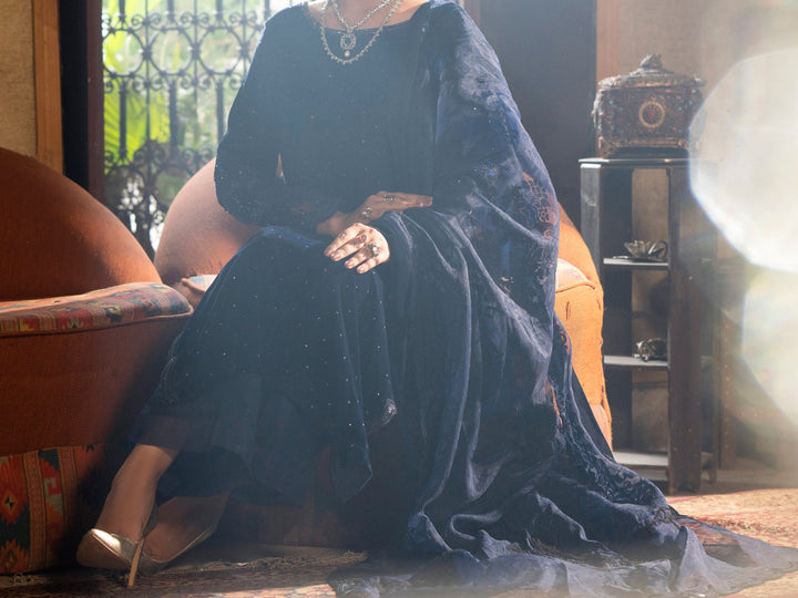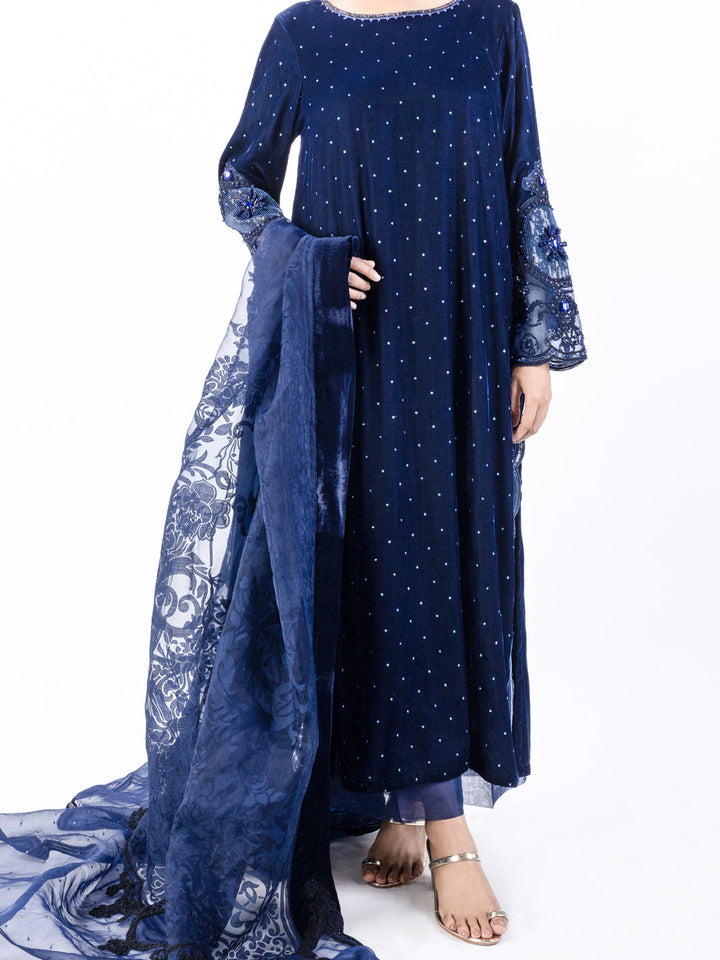 Dark Blue Velvet 3Pc Formal Stitched - AL-3PS-LS-444